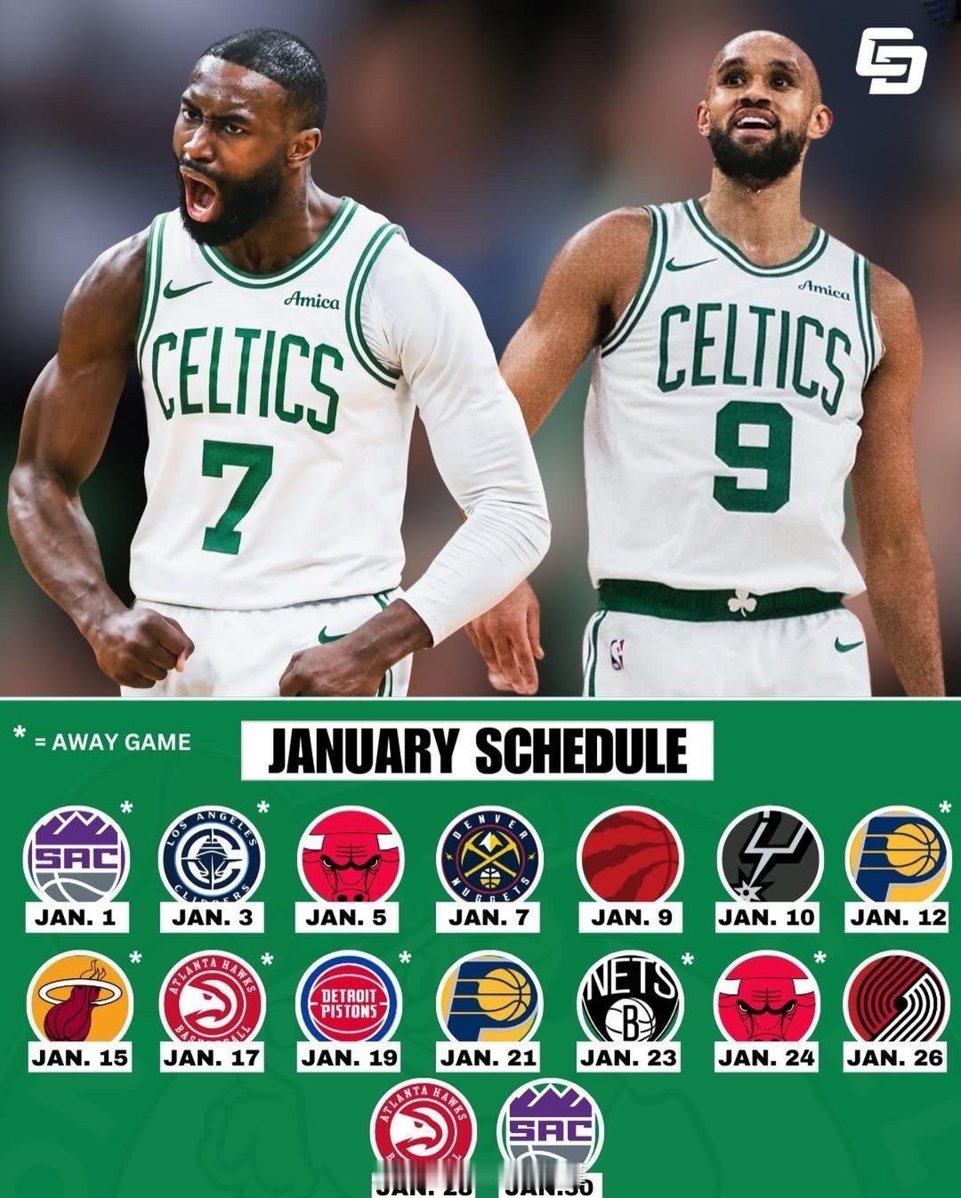 凯尔特人一月份赛程安排,挺友好的😼