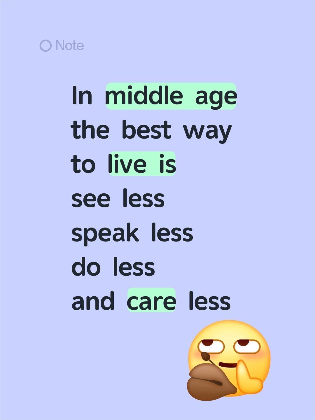 我评论了@暖阳YCX 的作品: In middle age the best way to live is see less speak less do less and care less