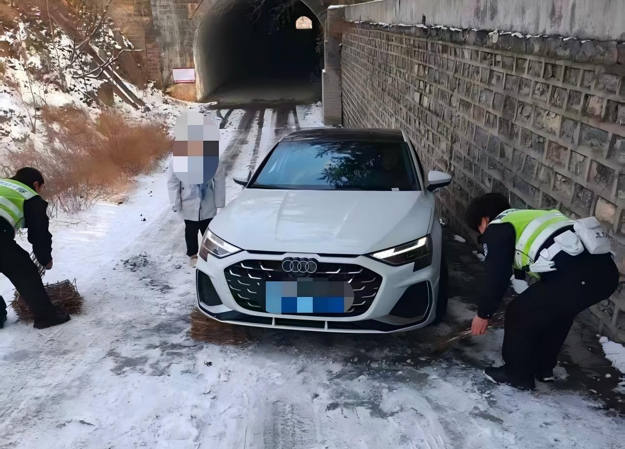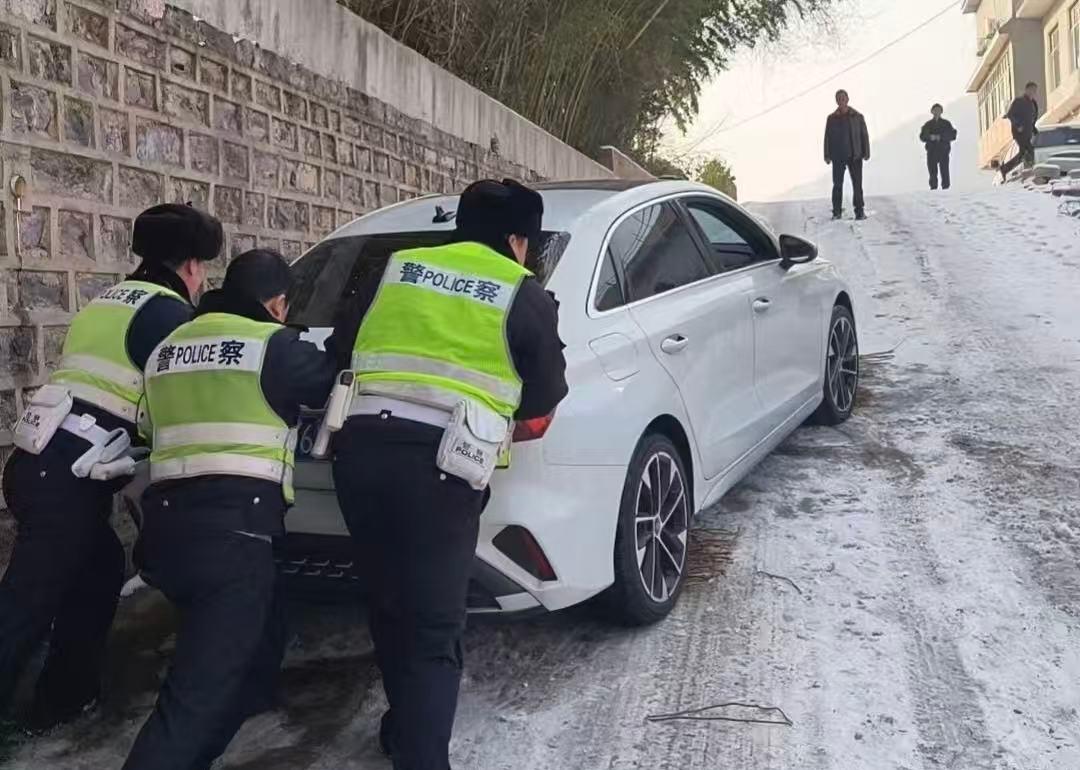 【风雪困途暖相助 登封交警护平安】1月2日中午,一辆车因路面结冰剐蹭被困。登封交警迅速赶赴,借来工具清理冰雪,调运竹垫增加摩擦,顶着寒风合力施救,帮助车辆成功脱困。郑州交警提醒 天气寒冷,广大驾驶人朋友注意专心驾驶,小心路面暗冰。