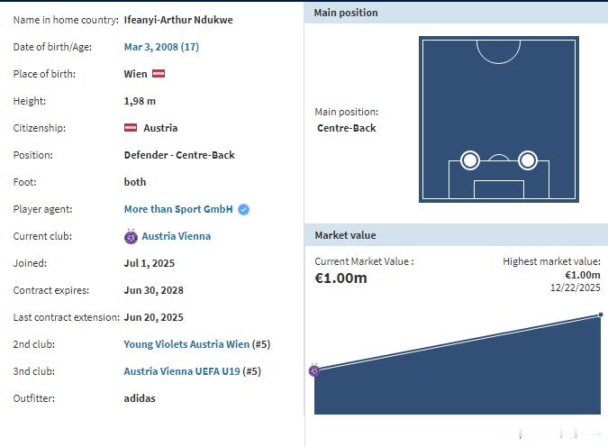 皮尔斯:利物浦正在洽谈签约事宜,目标是效力于奥地利维也纳、天赋备受赞誉的年轻中卫伊费安伊·恩杜克韦。尽管要到明年3月才年满18岁,不过利物浦方面希望能在7月敲定转会,让球员顺利加入球队。初期将进入U21梯队接受培养,但球队认为他具备升入一线队的潜力。恩杜克韦是由全球人才总监马特·纽伯里及其团队发掘的。纽伯里曾先后担任俱乐部青训学院精英招募主管、租借与球员发展主管,一年多前才升任现职。去年11月,恩杜克韦随奥地利征战卡塔尔U17世界杯(4-0淘汰英格兰破门),并随队闯入决赛,最终球队0-1不敌葡萄牙屈居亚军。这位土生土长的维也纳后卫身高6英尺5英寸(1.98米),身形极具威慑力,在青年梯队一路飞速成长。他曾担任U16队长,2024-2025赛季成为维也纳预备队常规主力,并于去年6月与俱乐部签下一份为期三年的职业合同。本赛季他已多次进入一线队替补名单,但尚未完成自己的奥地利足球超级联赛首秀。自2021年英国脱离欧盟后,英超俱乐部便无法签下海外未满18岁的年轻球员。