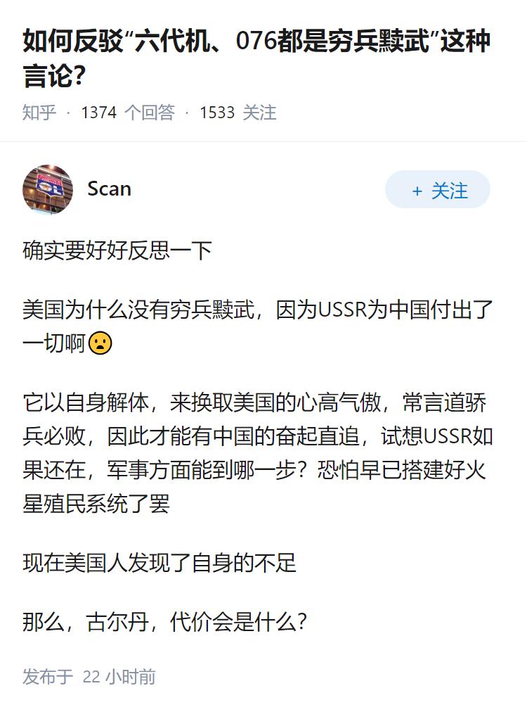 如何反驳“六代机、076都是穷兵黩武”这种言论?