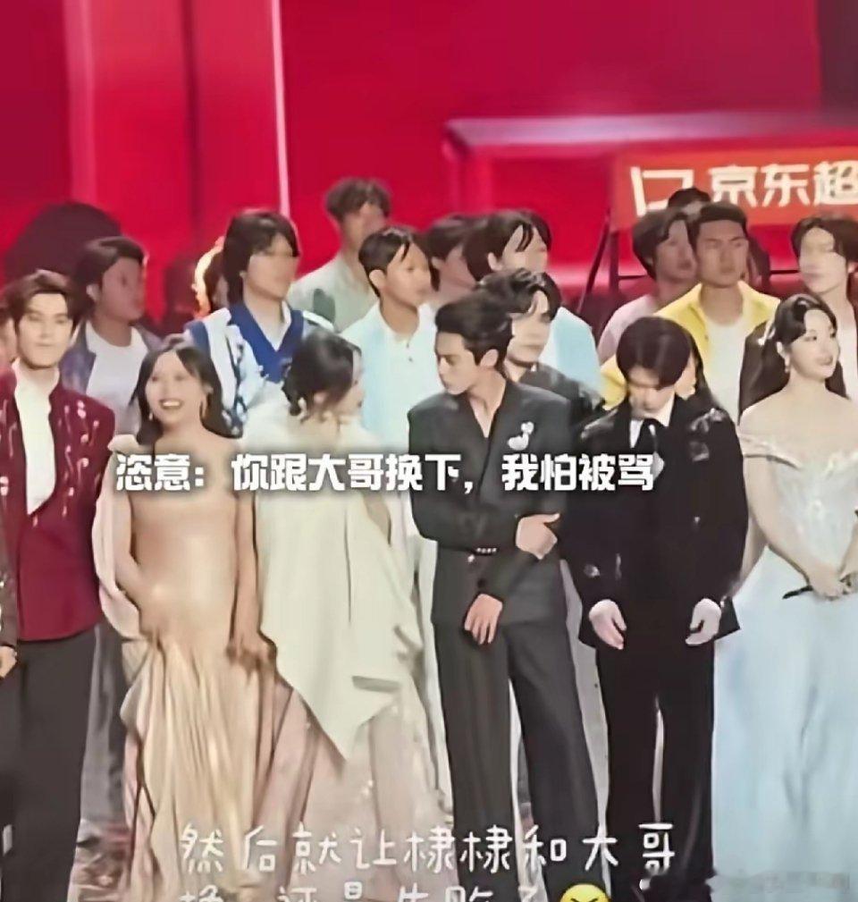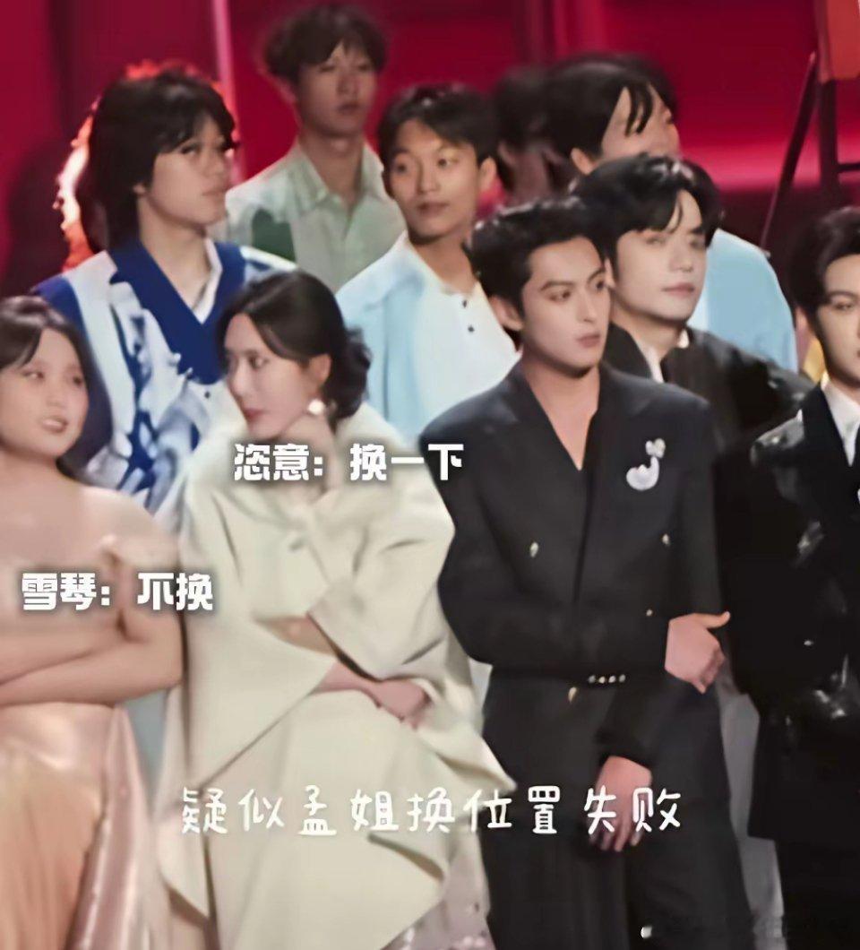 湖南卫视跨年晚会的零点拥抱合影环节,孟子义站在王鹤棣身边,整个人都透着不自在。她