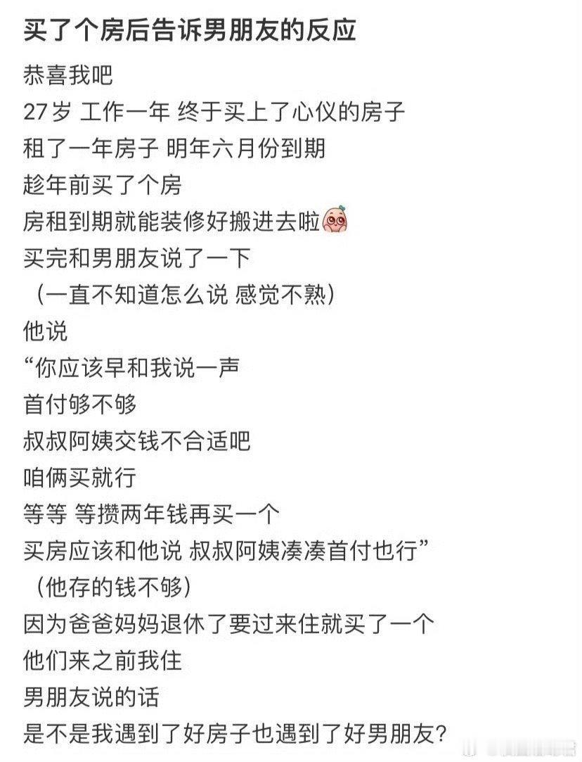 买了个房后告诉男朋友的反应