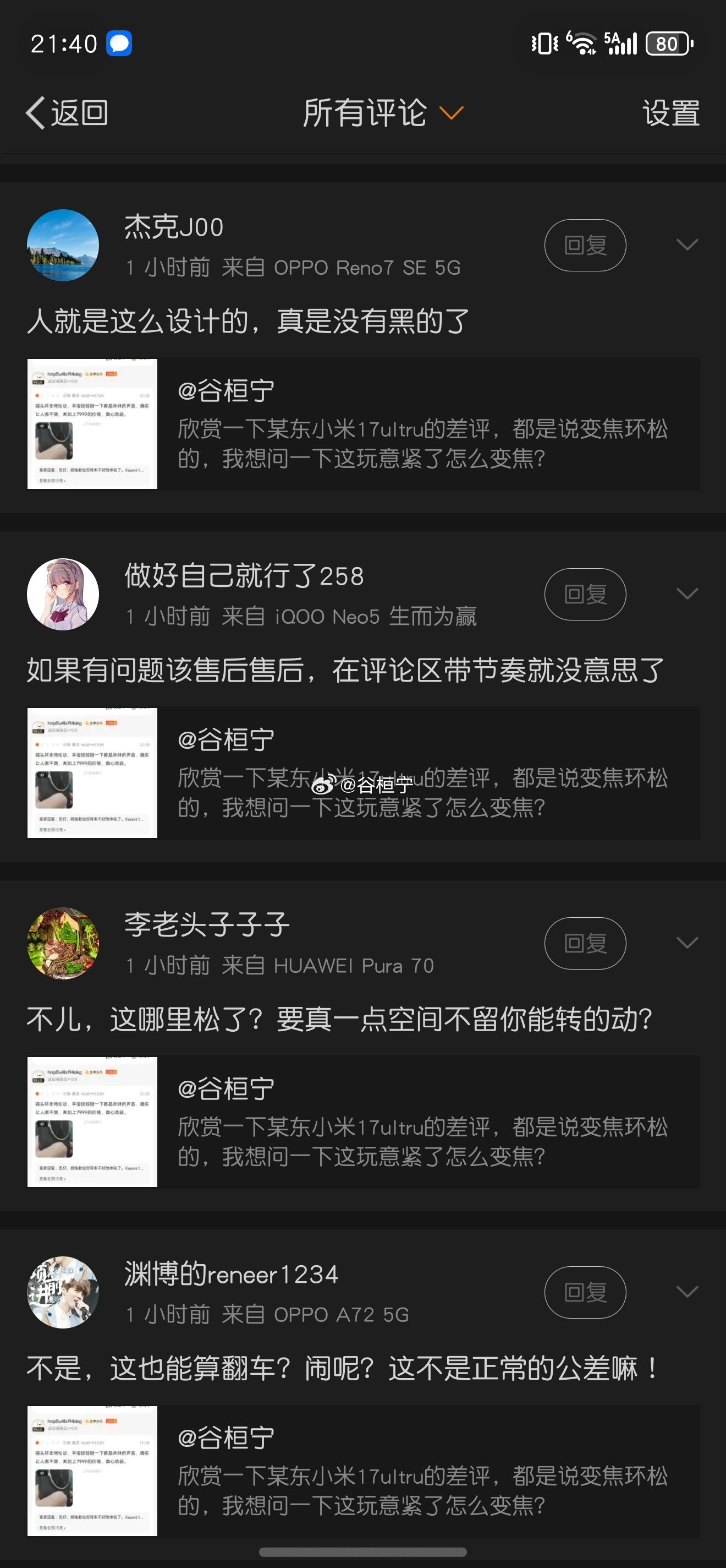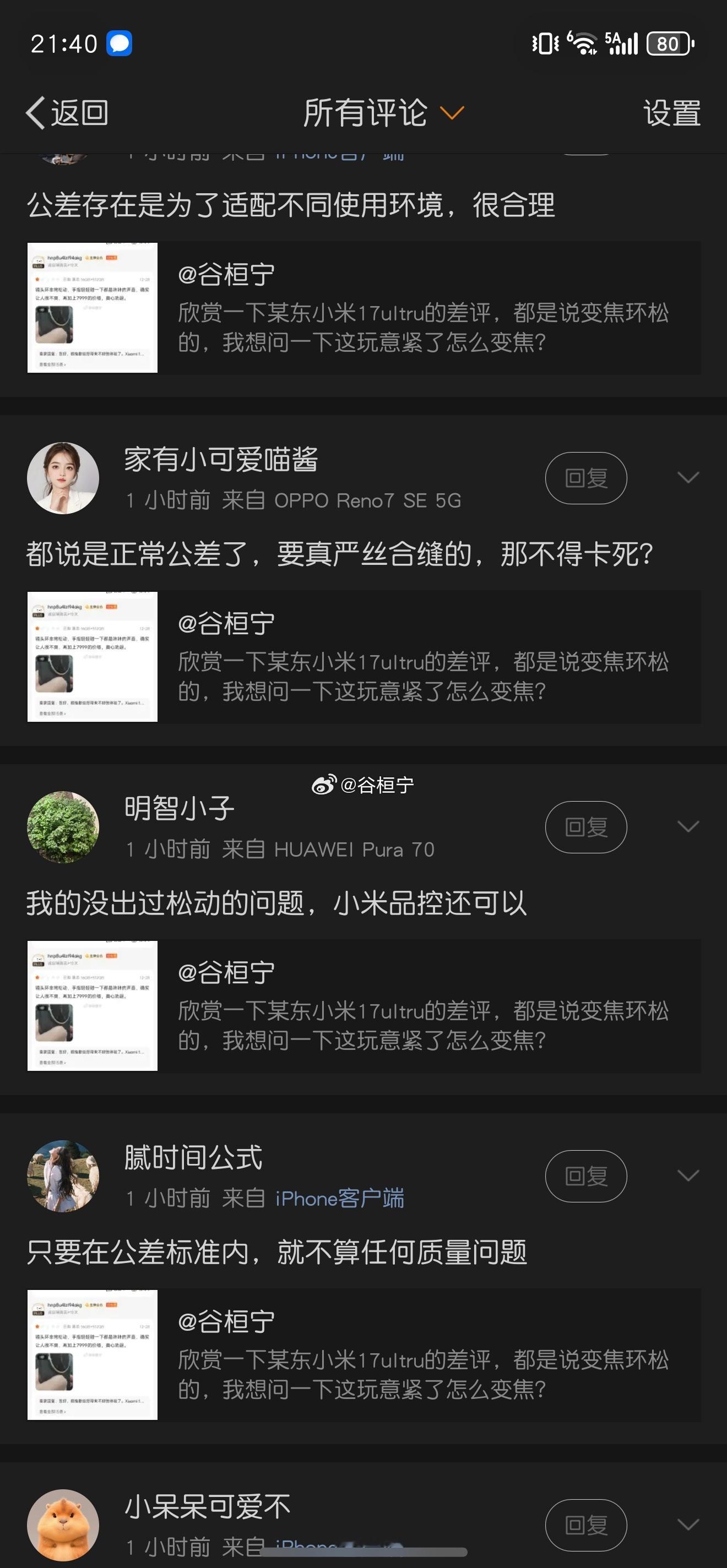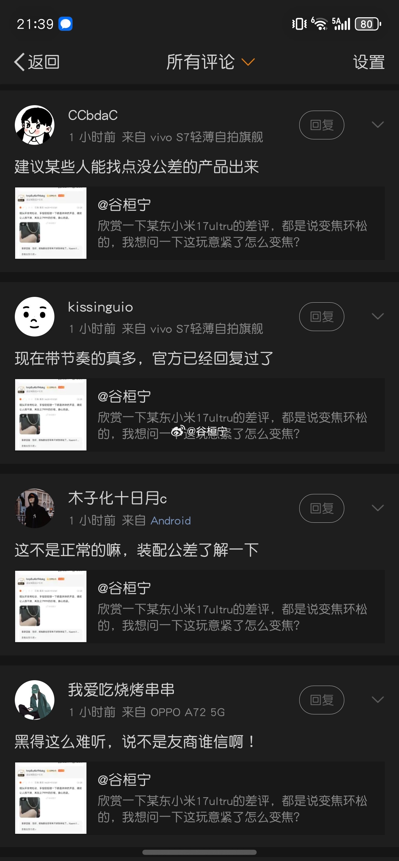 欣赏一下某东小米17ultru的差评,都是说变焦环松的,我想问一下这玩意紧了怎么