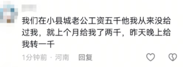 我们在小县城老公工资五千,他我从来没组过我,就上个月给我了两千,昨天晚上给我转一千