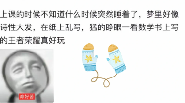 课的时候不知道什么时候突然睡着了,梦里好像寺性大发,在纸上乱写,猛的睁眼一看数学书上写游戏真好玩