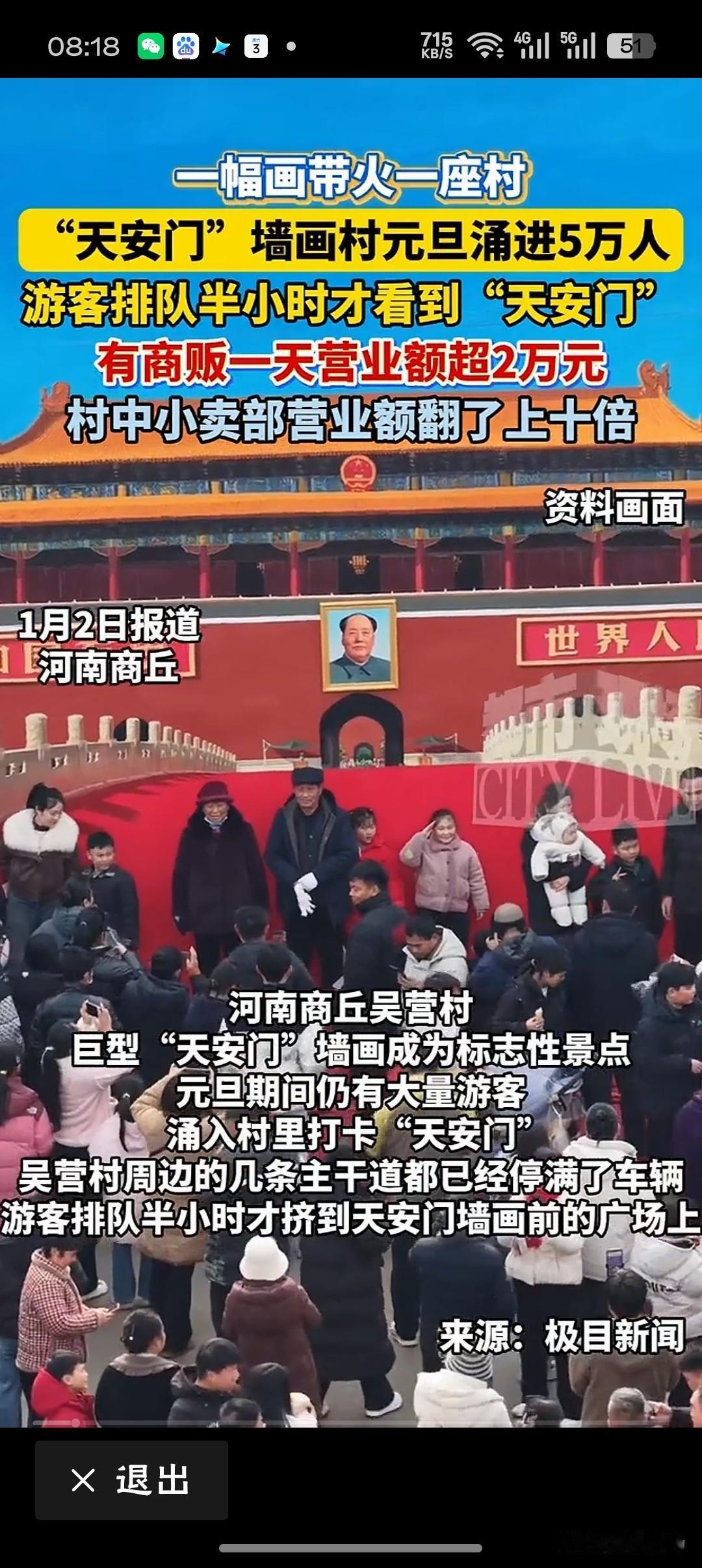 天安门墙画村爆火有商贩1天赚2万这泼天的富贵终于轮到“村”里了!1天2万不是梦,只要风口站得稳,墙画村变身“黄金村”,这波流量接得漂亮!