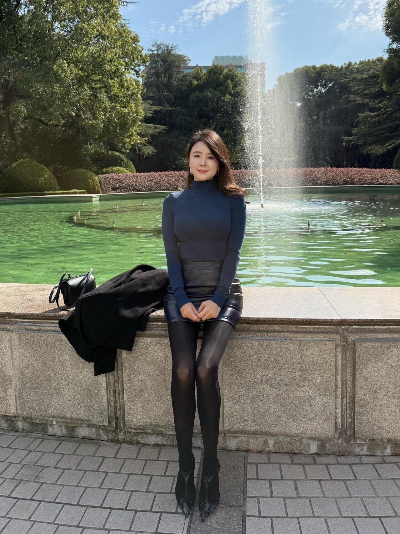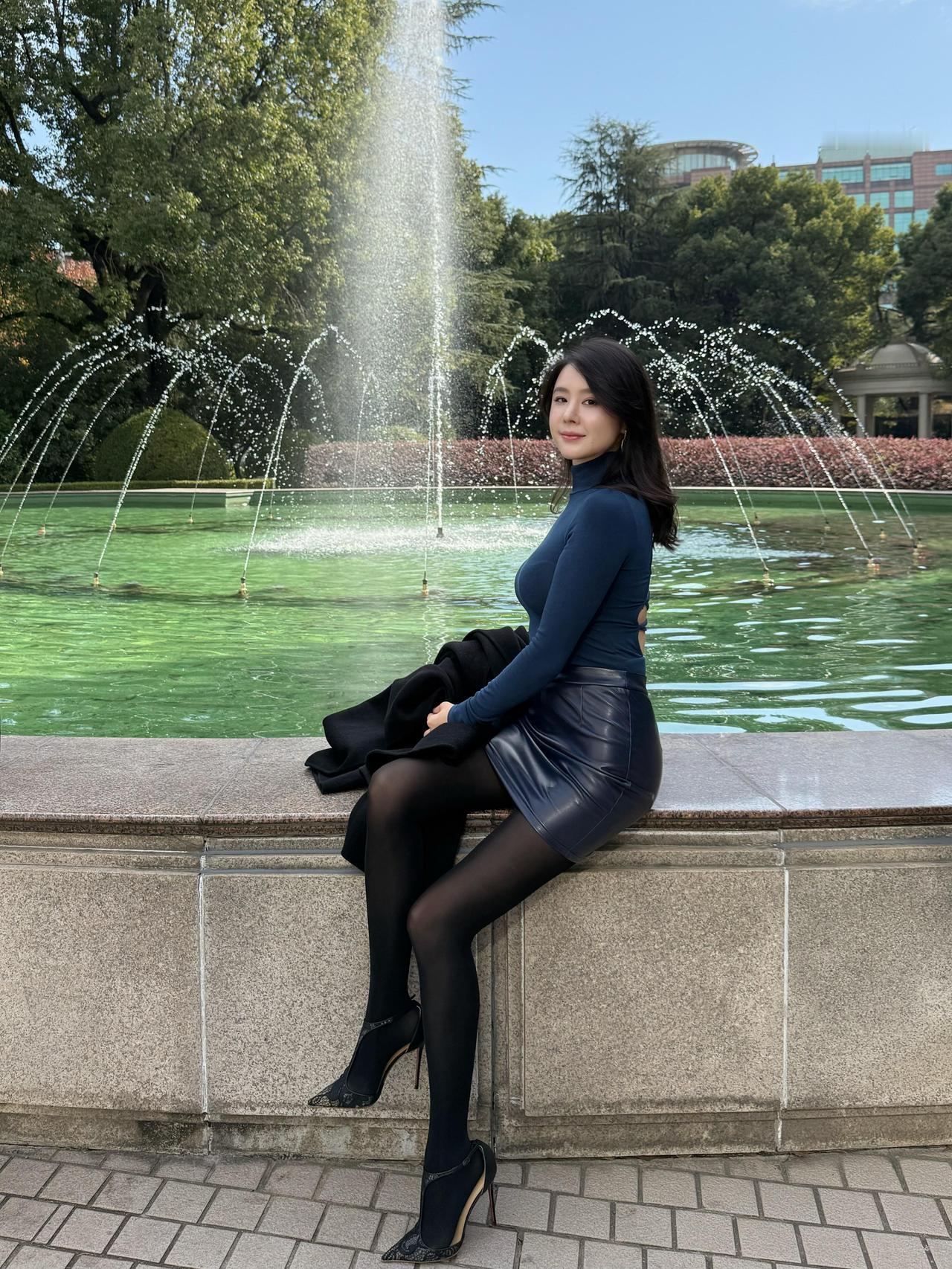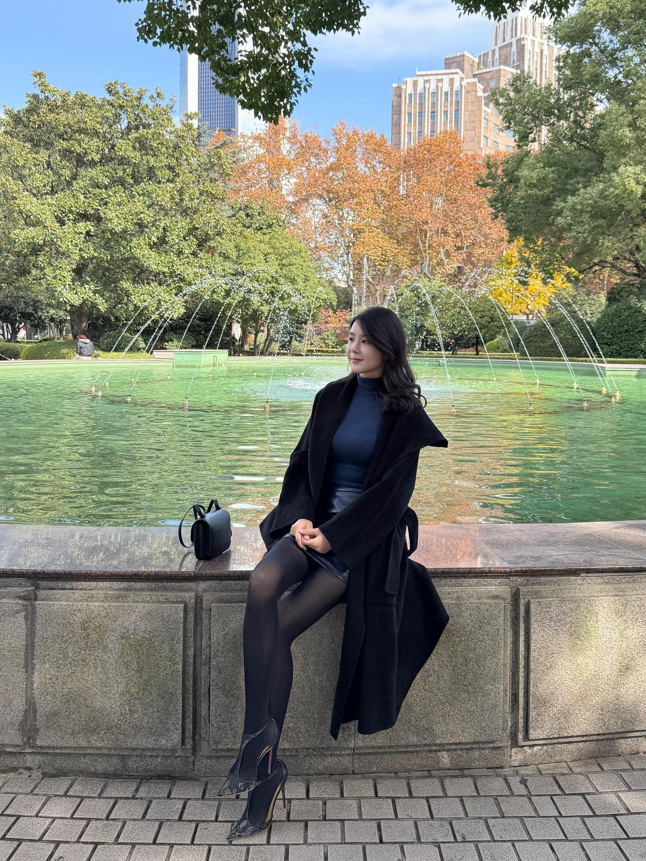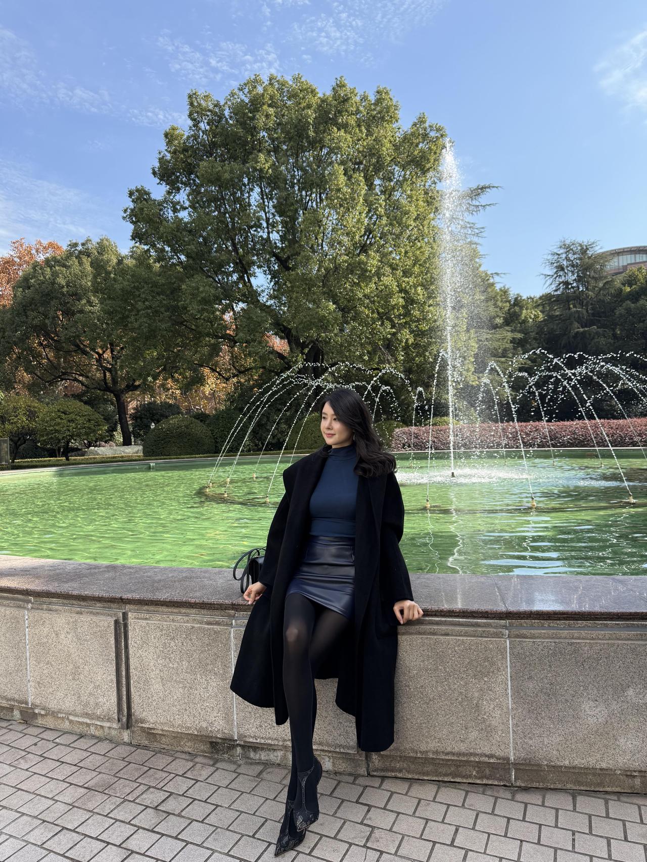园畔的晴光裹着风(现代抒情诗) 作者Ⅰ朱珠 池波是被揉碎的绿 喷泉扯着银线往下坠 阳光绕着树梢转圈圈 把每片叶子都晒得发亮 我裹着藏青的高领针织衫 软乎乎的料子贴在颈间 黑皮裙的亮面映着光 像裁了一小块夜空缀在身上 丝袜裹着小腿挡了点凉 高跟鞋踩在石板路上 咯噔咯噔 敲着闲时光 手里挽着的黑大衣 被风掀起一角 又轻轻落下 倚在石廊上时 风刚好掠过裙边 发梢跟着晃了晃 远处的喷泉水声潺潺 和脚步声缠在一起 像谁在耳边轻声絮语 转身走进雕着花纹的华堂 玉柱立得笔直 栏上的鎏光晃眼 黑大衣垂下来 遮住大半身影 藏青的衣衫衬着廊下的阴凉 裙角似乎还沾着园子里的香 没施粉黛的脸 迎着漏进来的光 不用刻意挺直脊背 也不用想着该说些什么 就这么站着 或者慢慢走 秋阳铺在地上 暖融融的 踩上去像踩着一层软棉 雕栏的纹路硌着手心 凉丝丝的 却很安心 风从堂外钻进来 带着草木的清新 拂过脸颊 也拂过衣角 原来最舒服的时光 就是不用追赶什么 看池波荡漾 听喷泉滴答 任阳光裹着风 把一身的疲惫都吹走 藏青与黑的搭配 衬着园子里的晴光 也衬着心里的宁静 岁月温良 大抵就是这般模样 在寻常的园畔 走着走着 就把日子走成了诗行