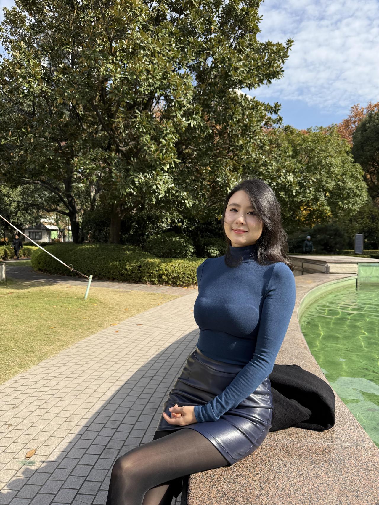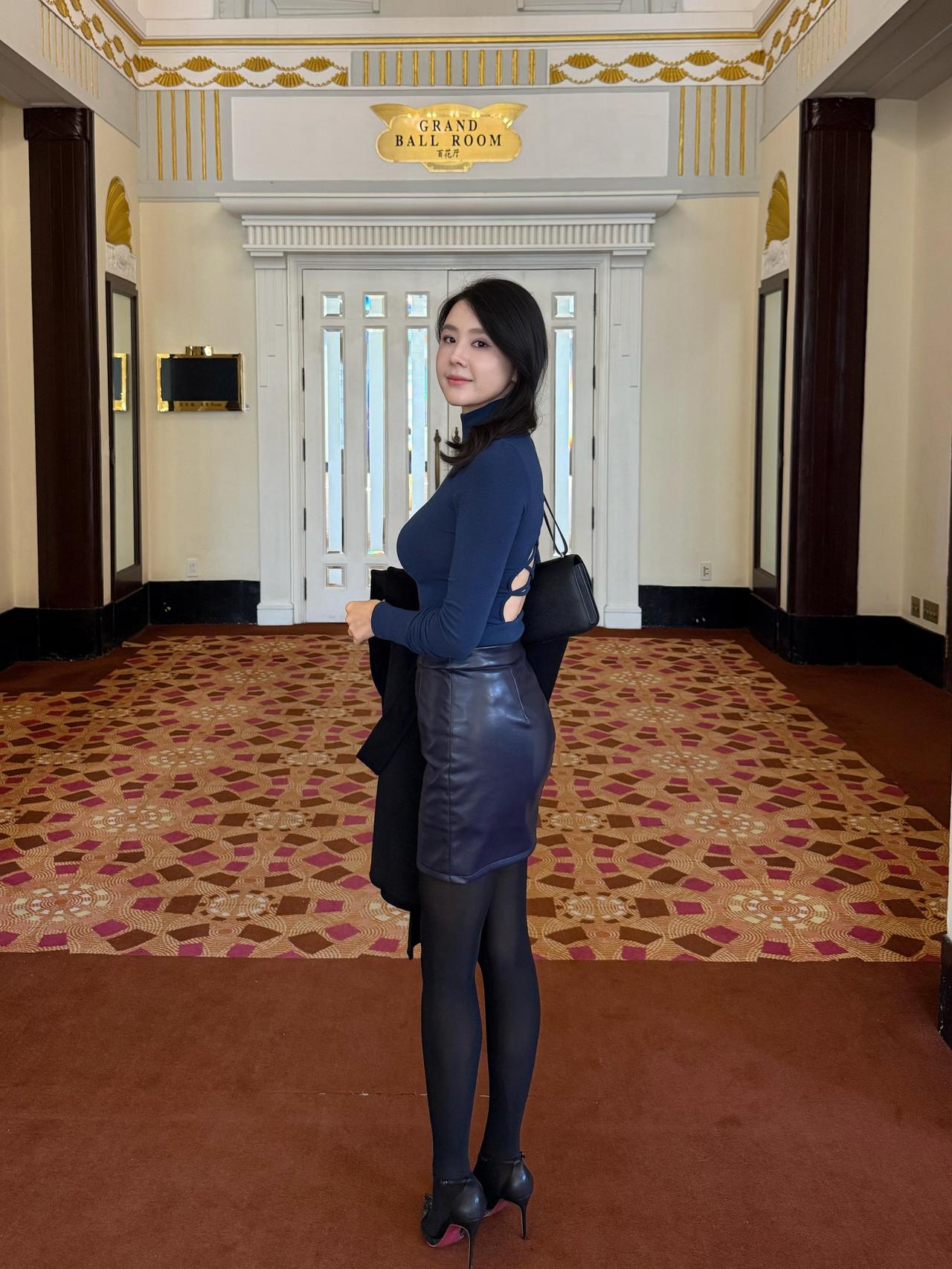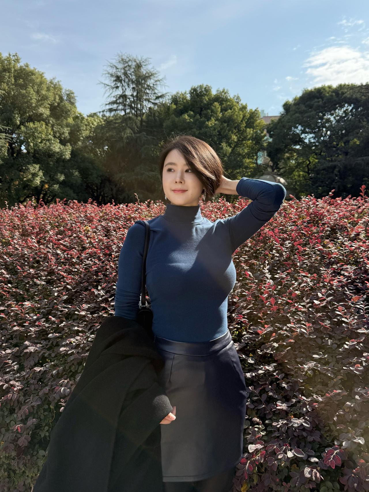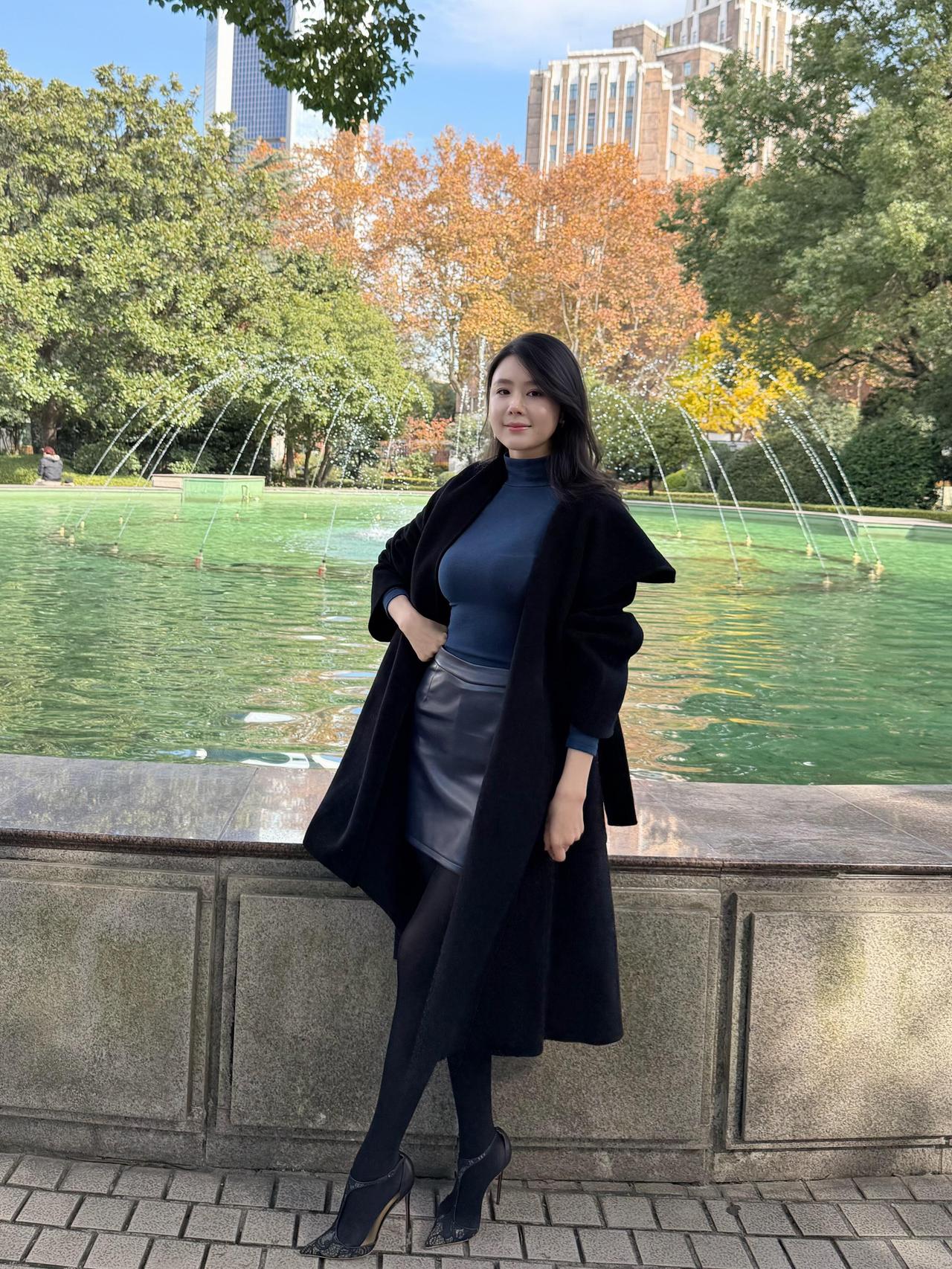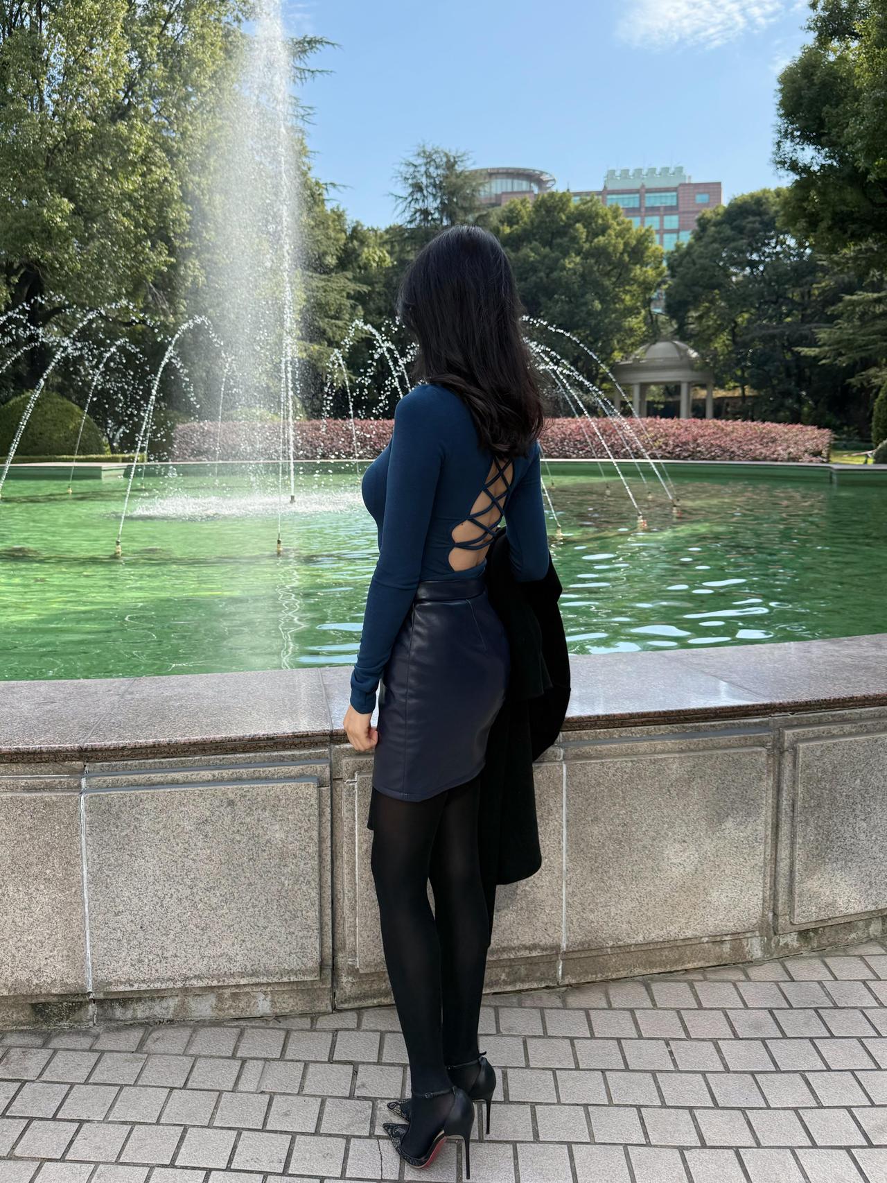 园畔的晴光裹着风(现代抒情诗) 作者Ⅰ朱珠 池波是被揉碎的绿 喷泉扯着银线往下坠 阳光绕着树梢转圈圈 把每片叶子都晒得发亮 我裹着藏青的高领针织衫 软乎乎的料子贴在颈间 黑皮裙的亮面映着光 像裁了一小块夜空缀在身上 丝袜裹着小腿挡了点凉 高跟鞋踩在石板路上 咯噔咯噔 敲着闲时光 手里挽着的黑大衣 被风掀起一角 又轻轻落下 倚在石廊上时 风刚好掠过裙边 发梢跟着晃了晃 远处的喷泉水声潺潺 和脚步声缠在一起 像谁在耳边轻声絮语 转身走进雕着花纹的华堂 玉柱立得笔直 栏上的鎏光晃眼 黑大衣垂下来 遮住大半身影 藏青的衣衫衬着廊下的阴凉 裙角似乎还沾着园子里的香 没施粉黛的脸 迎着漏进来的光 不用刻意挺直脊背 也不用想着该说些什么 就这么站着 或者慢慢走 秋阳铺在地上 暖融融的 踩上去像踩着一层软棉 雕栏的纹路硌着手心 凉丝丝的 却很安心 风从堂外钻进来 带着草木的清新 拂过脸颊 也拂过衣角 原来最舒服的时光 就是不用追赶什么 看池波荡漾 听喷泉滴答 任阳光裹着风 把一身的疲惫都吹走 藏青与黑的搭配 衬着园子里的晴光 也衬着心里的宁静 岁月温良 大抵就是这般模样 在寻常的园畔 走着走着 就把日子走成了诗行