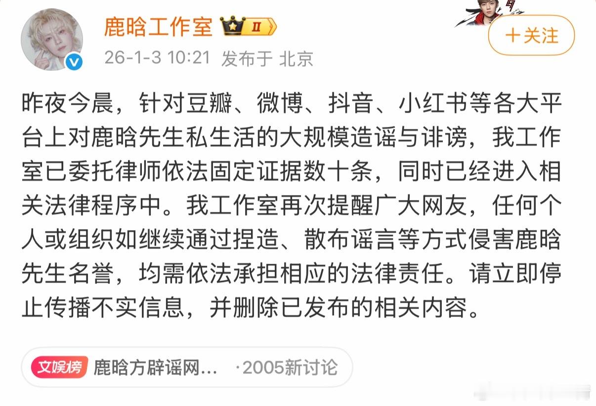 鹿晗纹身 鹿晗工作室再发声明,称已在各平台取证10条
