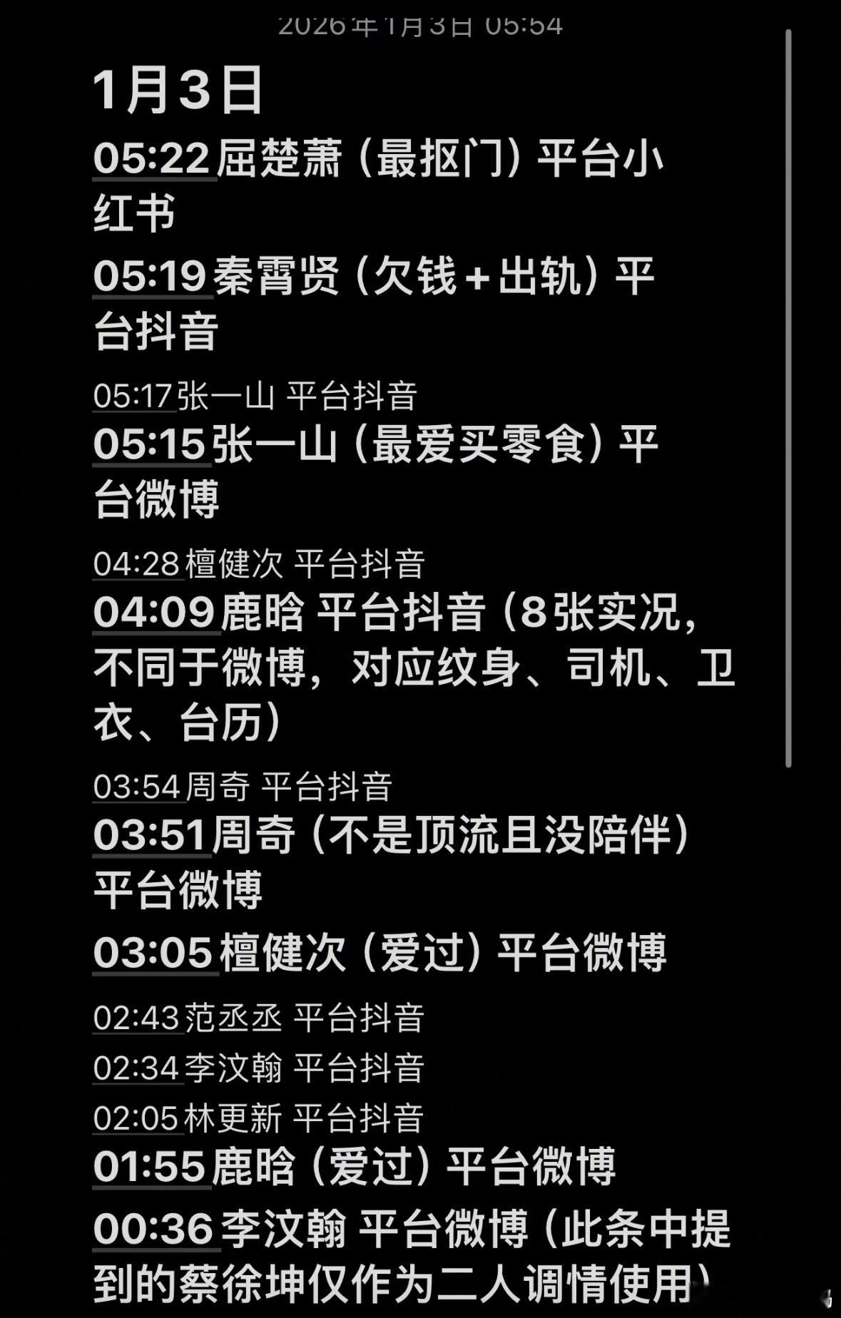 iamrooise所有顶流都睡完了网友总结的爆🍉时间线,谁也没想到开年就是内娱大地震:司晓迪可汗大点兵男明星