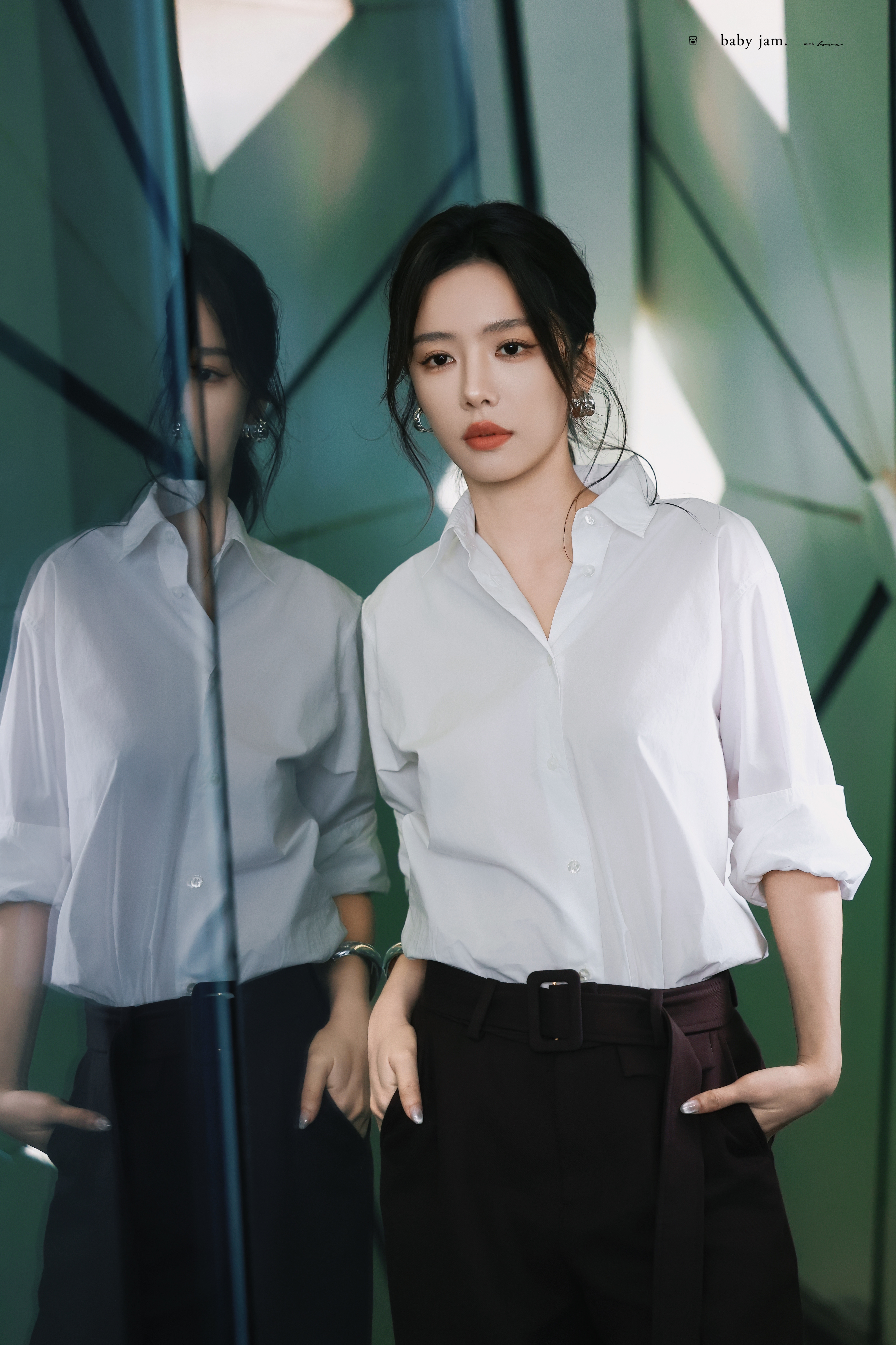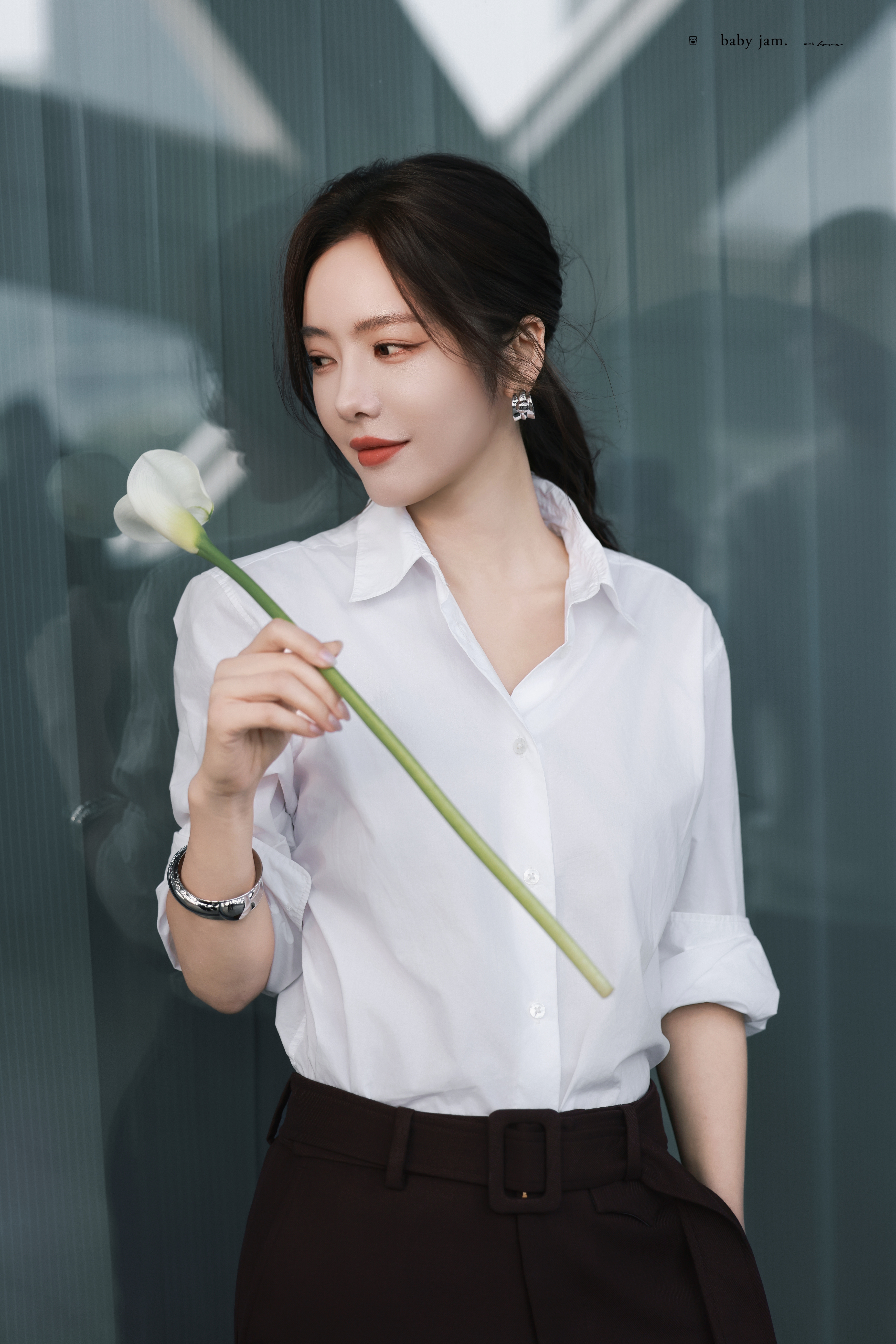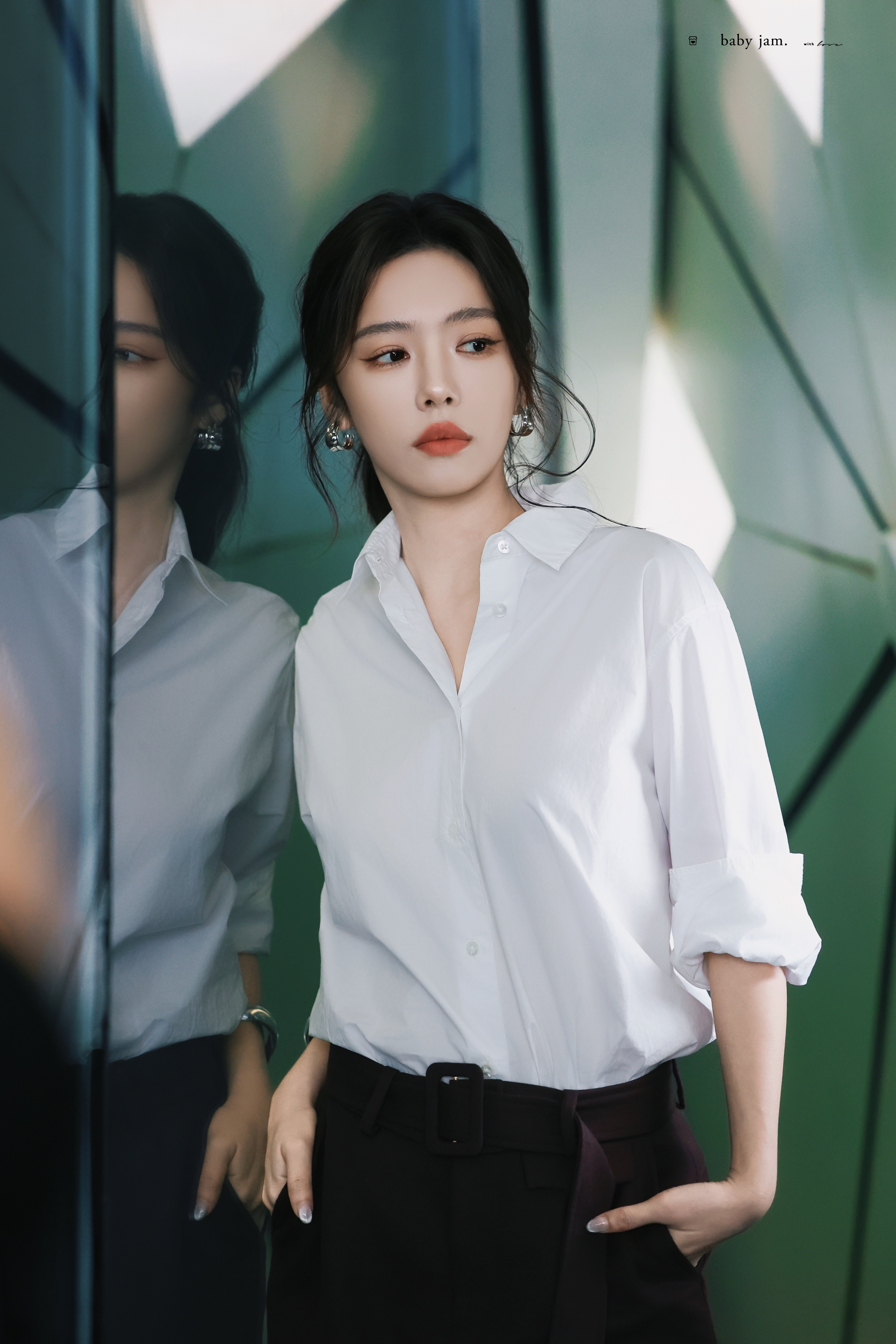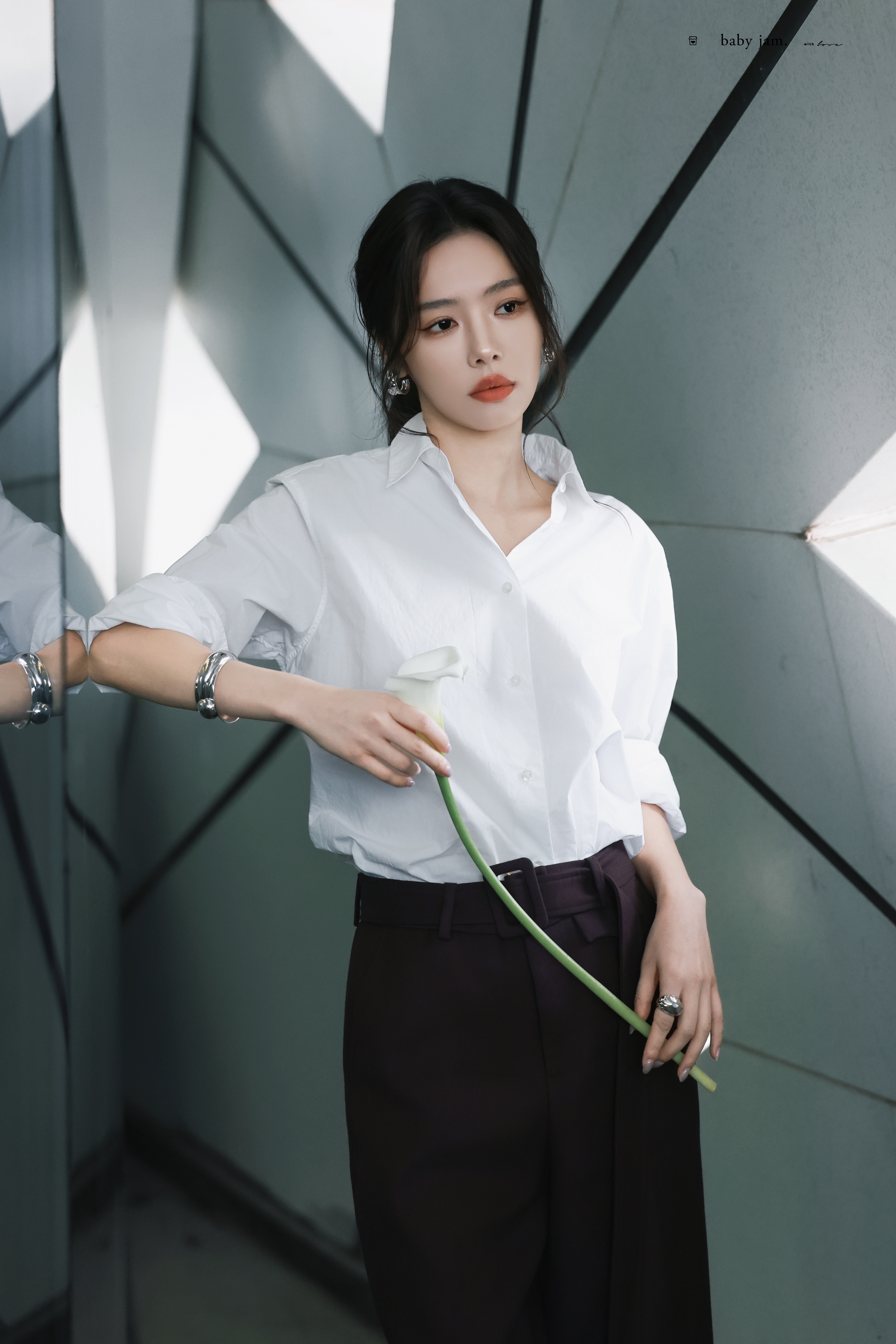 蔡文静 简约白衫衬出清隽风骨,咖色阔腿裤藏着慵懒气场,在几何光影里,把松弛与利落揉成独有的风情。