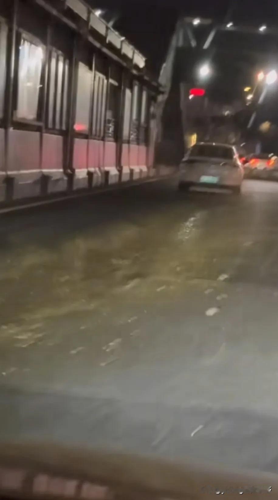 行车记录仪记录下的这一幕:广州天河中山大道,黄村BRT站附近,有抽粪车疑似是粪便泄露,黄色的糊状物体沿着道路撒了一路,后面跟着的车就悲催了,车轮碾过之后车身上也都沾满了这些米共,味道肯定浓郁极了。