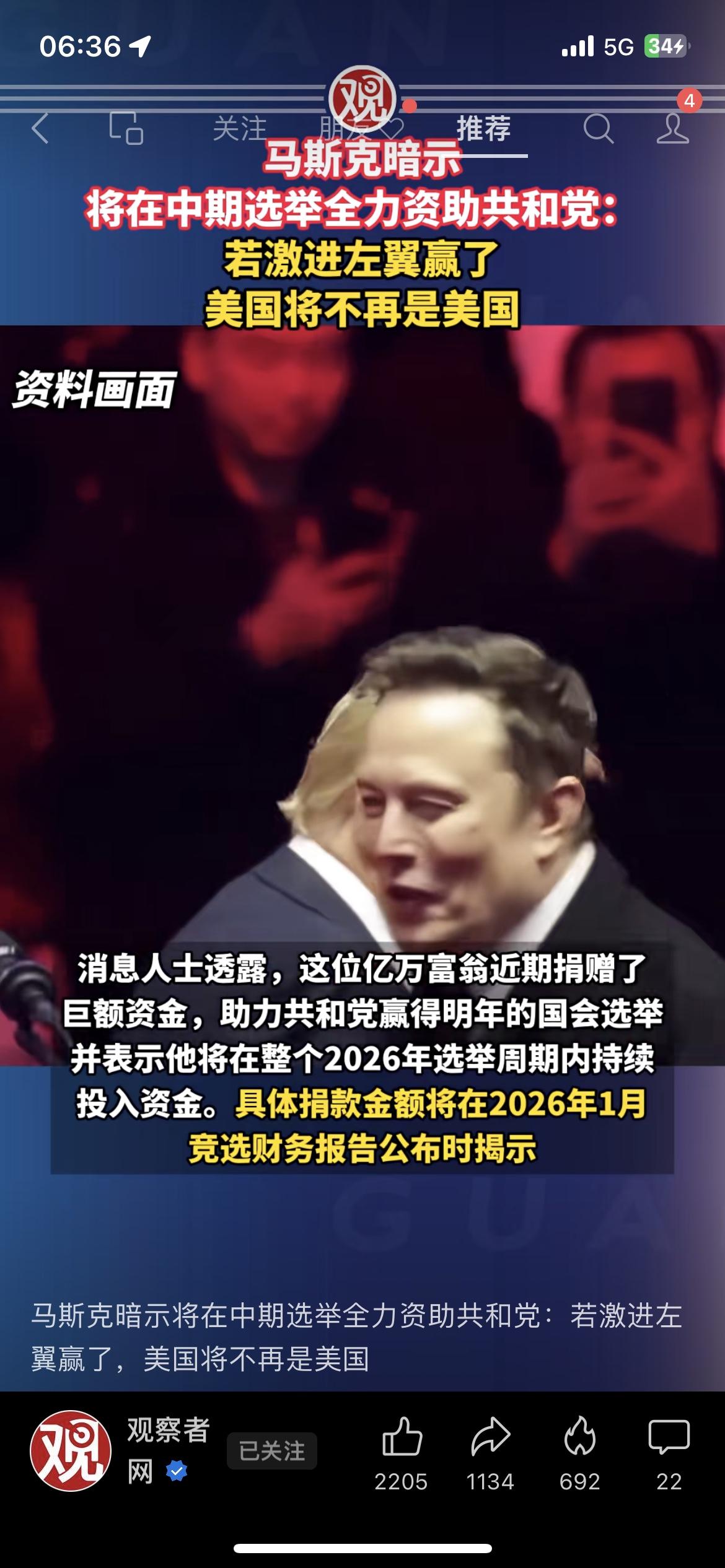 马斯克表态资助共和党✅直接影响你我的用车消费财经热点 马斯克放重磅消息!明确暗示中期选举全力资助共和党,直言激进左翼胜选美国必乱。 他在社交平台发文,吐槽民主党胜选会放任非法移民和各类欺诈乱象。 北京特斯拉老车主张女士直言,最怕他的政治倾向影响车企在华售后和定价。 马斯克的政治选择,或将牵动特斯拉、星链等多板块民生相关布局。 你觉得企业家参政会影响其产品民生定价吗?你关注过企业政治立场吗?马斯克 世界首富马斯克