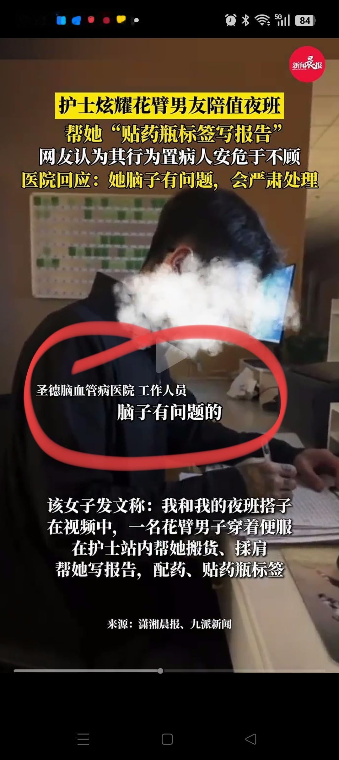 青岛女护士带男友进配药室,医院回应她脑子有问题,事实确实如此!男朋友是个大花臂不说,还敢让他写报告,贴标签?未免也有点太儿戏了吧! 这就还不够,特意发视频炫耀,生怕别人不知道!但凡是脑子正常一点点的人,都不会这么做。 就这有些网友还觉得事不大,只要她做好了本职工作,没犯错就行。听着就好笑,她男朋友什么都不懂,万一写错了,造成的后果谁能承担的起? 这样的人必须开除,医院的回应一点问题没有,就是脑子有泡。。
