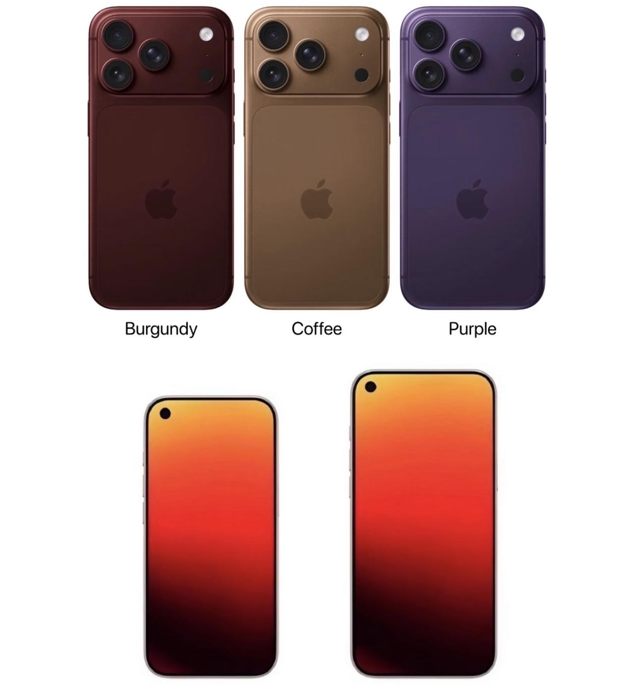 【iPhone18 Pro外观猛料】颜值封神还是翻车?新机三款配色曝光,渐变紫成颜值担当,酒红、咖啡棕。 正面:可能砍掉灵动岛,强行上左上角单打孔?[捂脸]视觉违和感拉满,很多果粉表示,居中挖孔更香,缩小灵动岛也能接受,唯独拒左上角开孔! 屏占比提升难掩设计硬伤,对称美学彻底失守,这波外观大改,堪称苹果最争议的一次颜值抉择,但是每年iPhone改了外观的,基本都会大卖。你们喜欢这种设计的iPhone18 Pro嘛?