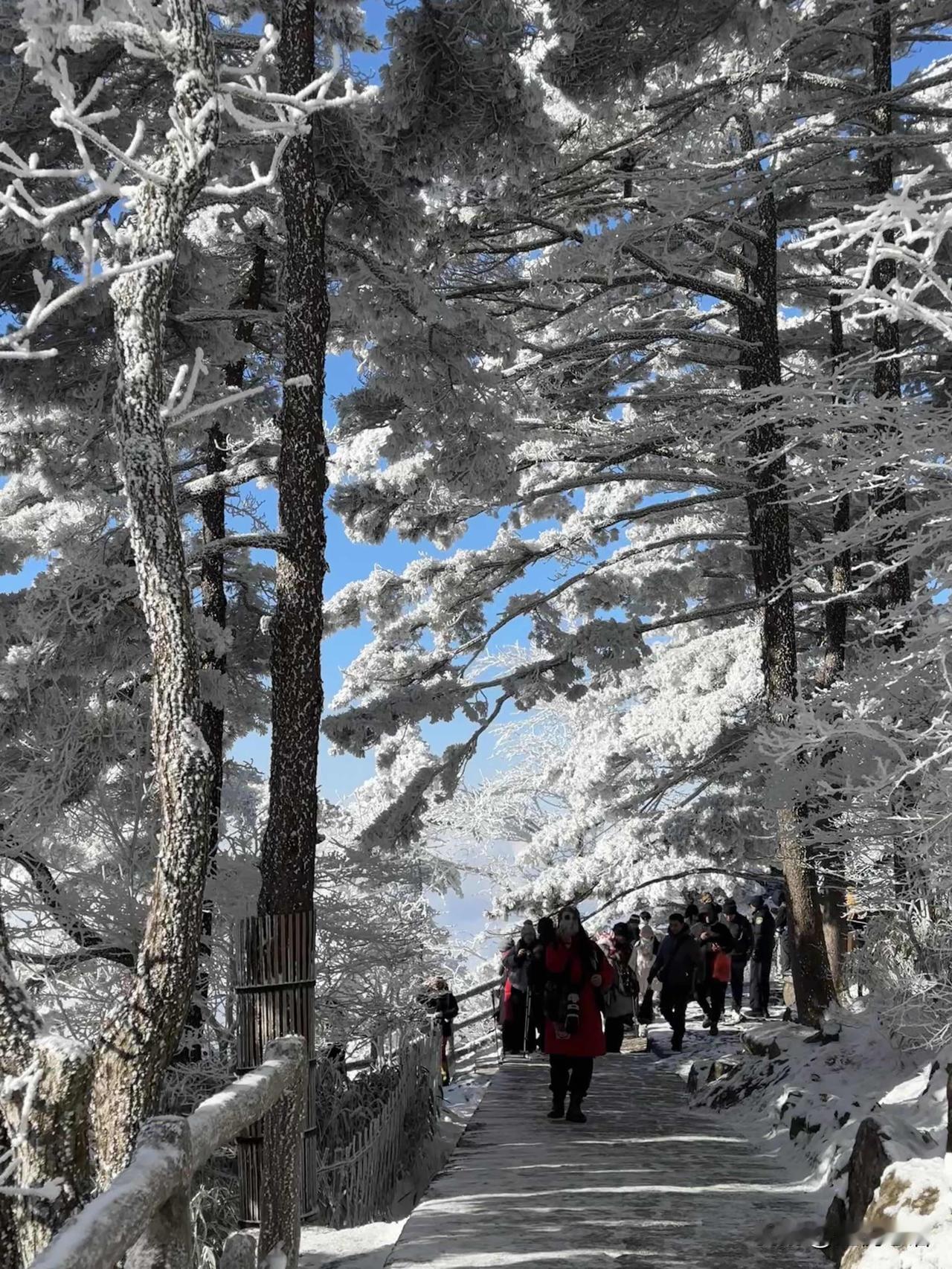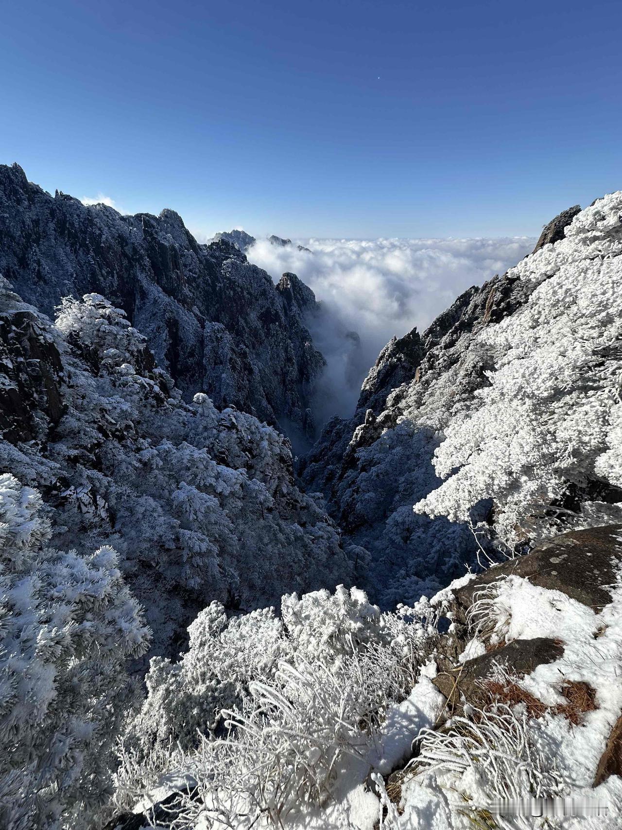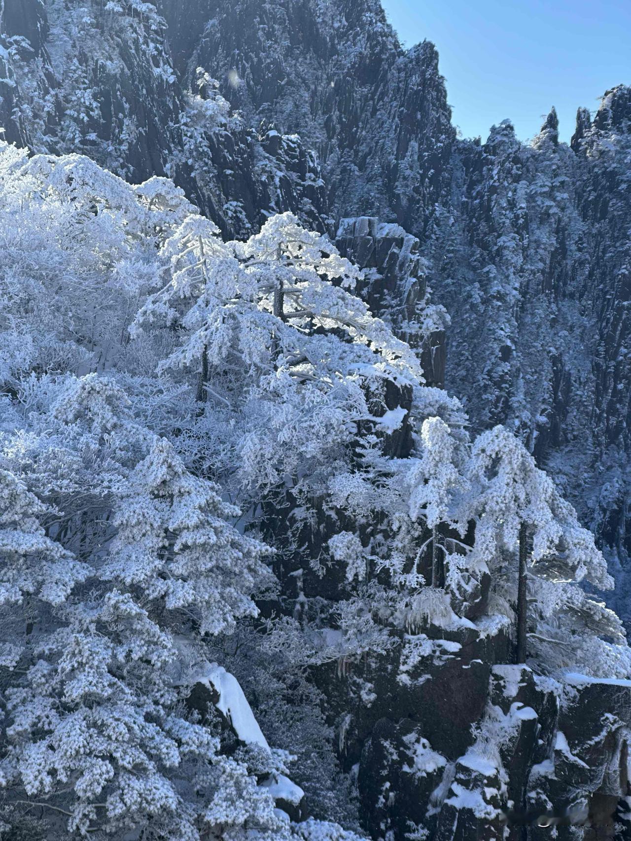 总要来黄山看一次云海吧! 谁懂啊! 去黄山真就撞大运了! 日出把天空染成橘子海, 云海像棉花糖铺满天际, 雾凇挂在枝头亮晶晶的。 一步一景,冻得手脚发麻也值! 爬山的累在看到美景那一刻全消散, 这才是旅行的意义啊~ 建议想冲的朋友早点蹲点位, 穿厚点,这样的神仙景色真的能记一辈子! 黄山顶峰看云海 黄山的云雾