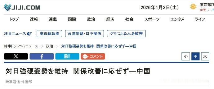 跨完年也不会忘!日媒猜测:2026年中国可能会继续对日本采取强硬立场 这是1月3号当天一家日本媒体对外发布的文章,该文章认为虽然现在时间已经进入了2026年,但是结合中日两国目前的实际关系,中国极有可能会继续对日本采取强硬的立场。 这还用他们说!一直到现在为止,他们的女首相对于涉台言论一不撤回,二不道歉,甚至还叫嚣要在西南诸岛部署导弹,在琉球群岛部署雷达。没有一点要认错的诚意。在这种情况下,中国对于日本的各项现有反制措施肯定会长久的坚持下去。 包括但不限于,文化方面取消一些公开活动和交流,经济方面取消使产品进入,拒绝经济代表团访华,尽可能的减少公民入境人数。外交方面持续保持高度施压,在此基础上,开始更多的提到琉球问题,从法理和历史上牢牢的压制住日本。而在军事层面上,解放军的海空力量继续保持常态化活动和演习。 这些动作并不会因为从2025年变成2026年就发生任何的改变,甚至连猜测都不用猜测。