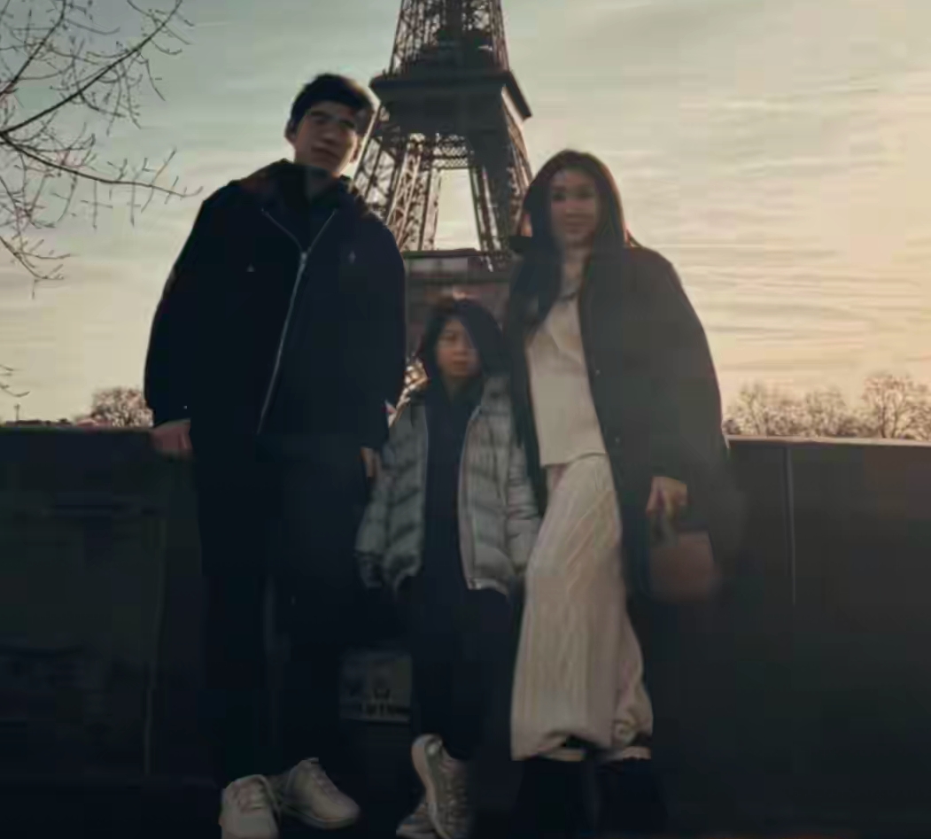 何超盈在法国温馨跨年,小7岁丈夫罕露脸,一家人合照女儿像父亲
