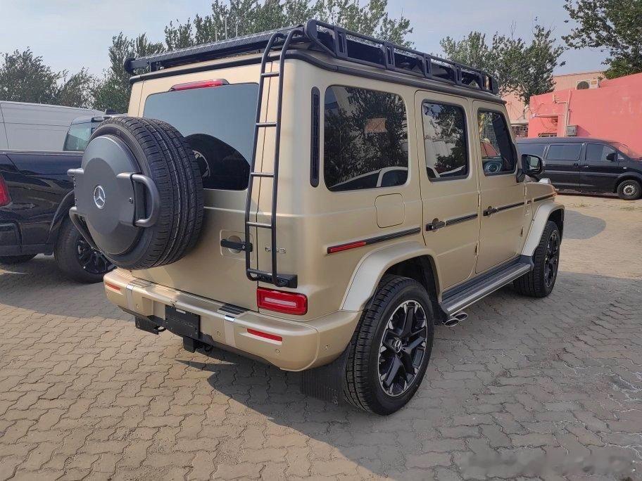 25款加版G63专业版,矿漠沙金/白米,奔驰G级越野车[超话]奔驰[超话] A22电磁悬挂AMG越野套件(AMG主动行驶控制带侧倾稳定功能,20寸AMG五辐式双轮辐哑光黑轮毂,专业车顶行李架,后挡泥板,越野驾驶模式,专业版备胎架,后备箱橡胶脚垫)主动多轮廓座椅套件PLUS(驾驶动态前排多轮廓,增强型/快速加热前排座椅,气候舒适/通风前排座椅)标配:车库门开启、温控杯架、无钥匙进入、前无线充电等