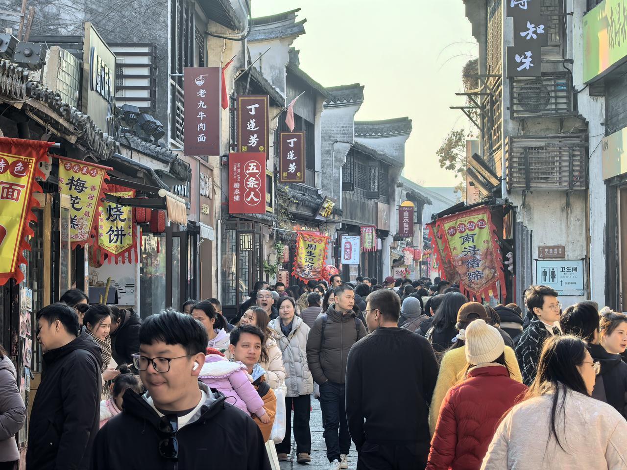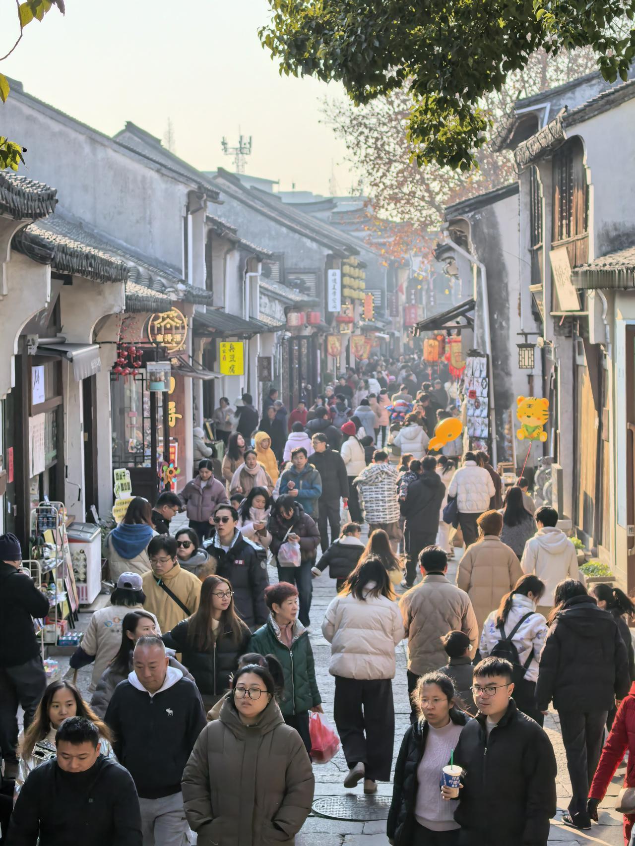 元旦期间旅游市场一片火热。浙江湖州南浔古镇,青石巷陌间人头攒动,摩肩接踵的游客们穿梭在白墙黛瓦的古宅之间。街头巷尾游人如织,古镇内河上船行如梭,一幕幕壮观的“人山人海”景象正随时上演。 这个元旦假期,你在哪里过的呢?