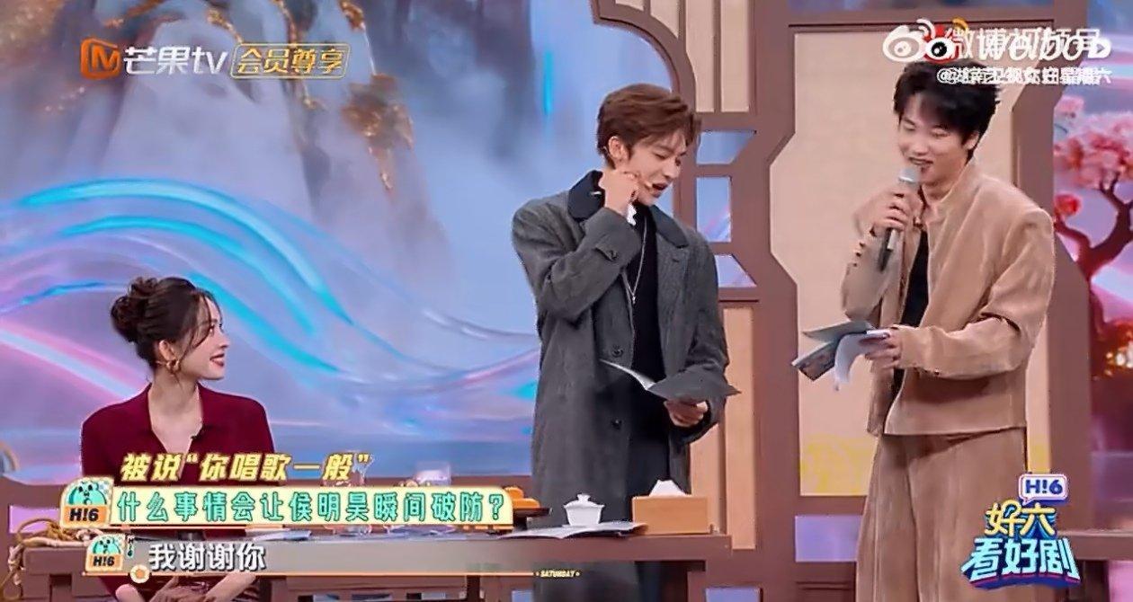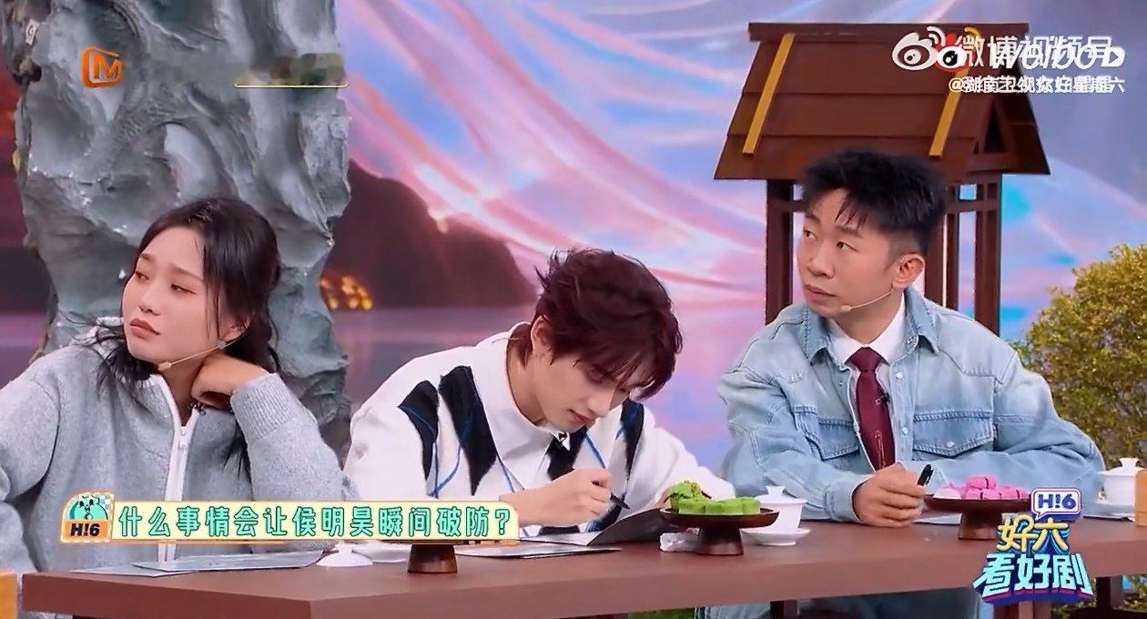 让侯明昊破防只需要一句话你好星期六 嘿呀,想让侯明昊破防简直不费力气!节目里被说“唱歌没亮点”,他翻手卡时身体一晃,两眼一黑差点摔倒,那又懵又可爱的样子,精准命中他唱歌方面的“小纠结”啦!
