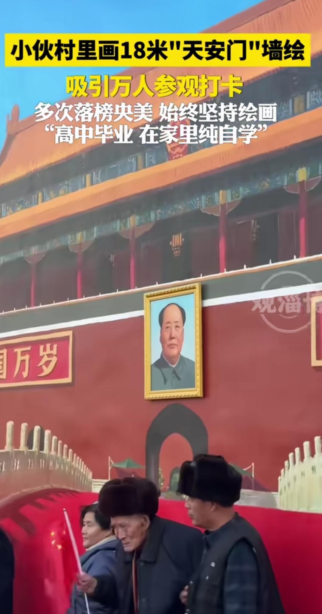 是金子总会发光! 青年画家吴承言在村中绘就一幅巨型天安门主题墙绘,吸引了万人打卡。 平凡的人做出非凡的人事! 山不在高,有仙则灵! 人不在名,有艺则成! 这么接地气,引起这么大轰动的,让老百姓喜欢,让老百姓满意,才是真正的艺术。 什么是公益?伸出一双手,圆了多少人可能一辈子都不能实现的梦想……