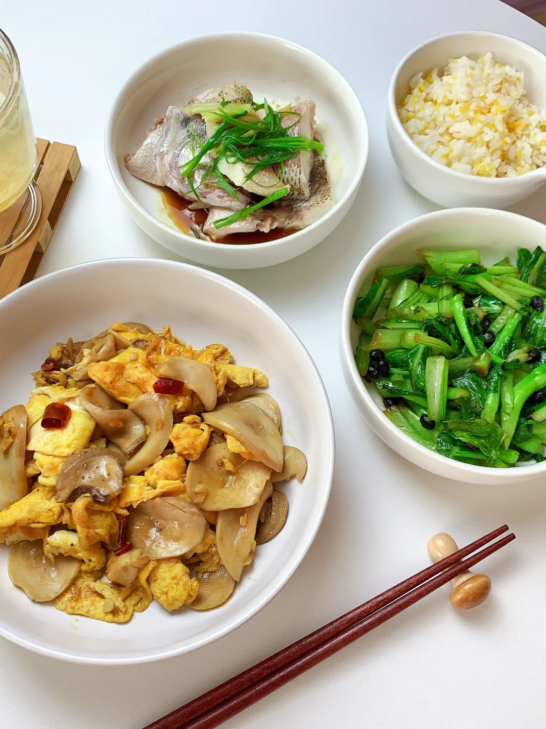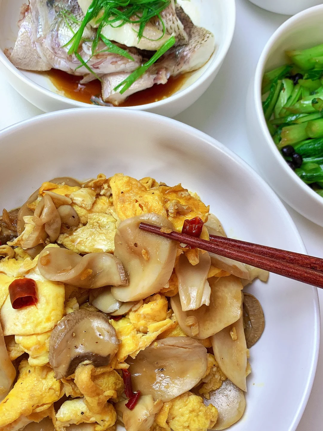 👩🏻🍳分享今日菜单 [一R]豆豉炒菜芯 [二R]清蒸鲈鱼 [三R]杏鲍菇炒鸡蛋 主食:米饭🍚 ……………………………………………………………………………… 🛒食材清单: 鸡蛋 | 杏鲍菇 | 菜芯🥬 | 鲈鱼🐟 📝我的美食日记,一日三餐,拒绝外卖[偷笑R],坚持做饭的每一天,吃简单干净的饭菜~ ₍˄·͈༝·͈˄*₎◞ ̑̑