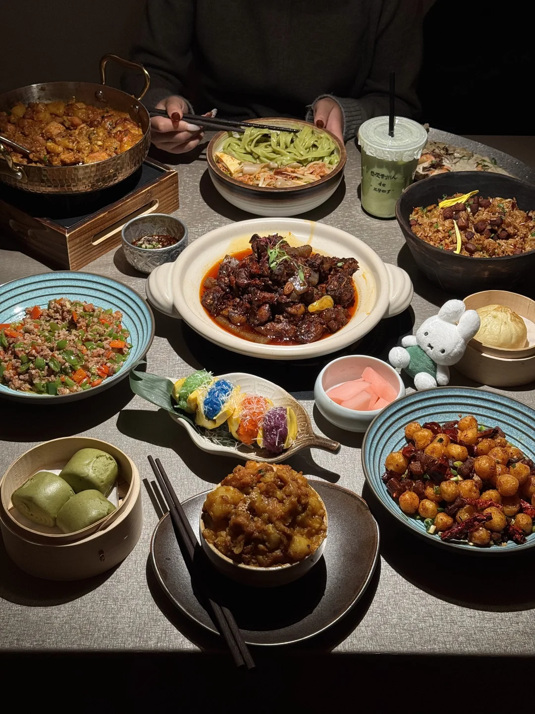 上城天街新开的贵州菜!!好看又好吃的云南菜漂亮饭!!适合约会… 抹茶面、舒芙蕾、冰浆、铜锅油焖鸡、菌菇奶油虾。。。。每一样都惊为天人的好吃。。。