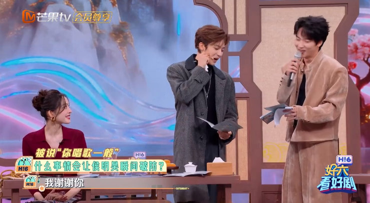 让侯明昊破防只需要一句话你好星期六 游戏里有人写下“唱歌一般”,小侯翻手卡两眼一黑直接破防!这“逆鳞”被戳,是谁这么会找点,让小侯如此无奈又可爱!侯明昊