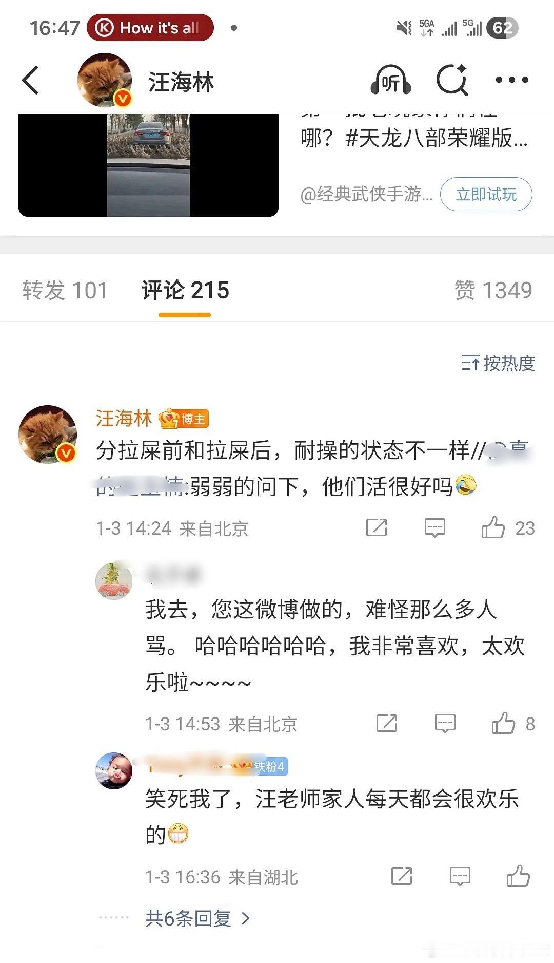 我有点理解顶流粉丝了,汪海林说话确实太粗俗了,甚至让人不适。不过粉丝应该无视他,别老是自己对号入座。
