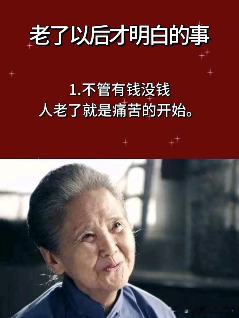 人老了才明白: 儿孙满堂是假的,晚年靠得住的只有这四样 第一: 有钱的自己 这句戳心的实话,戳中了太多中老年朋友的心声,不是否定亲情的温暖,而是历经岁月沉淀后,摸透了晚年生活的底层逻辑。 身边不少老人,年轻时为儿女倾其所有,把积蓄全花在孩子的婚房、彩礼上,自己兜里没留一分应急钱,老了遇事只能伸手求儿女。 可现实往往很骨感,儿女有自己的小家要顾,房贷车贷、孩子教育压得他们喘不过气,有心孝顺也常常力不从心,难做到事事周全。 有钱的自己,从来不是追求大富大贵,而是手里有一笔能自由支配的存款,不用看人脸色,不用在病痛来临时手足无措,更不用为柴米油盐低眉顺眼。 这笔钱,是晚年生活的底气,是应对突发状况的保障,更是维护尊严的铠甲,它能让你在想享受生活时,有说走就走的勇气。 那些手里有钱的老人,不用依附儿女生活,既能坦然接受儿女的孝心,也能从容拒绝不合理的索取,日子过得自在又舒心。 反观那些兜里空空的老人,哪怕儿女再孝顺,伸手要钱的次数多了,难免会让儿女为难,自己心里也会生出愧疚,慢慢就没了底气。 现实中这样的例子比比皆是,有退休金有存款的老人,能自主选择养老方式,能大方为自己的爱好买单,晚年生活过得有滋有味。 而无钱无保障的老人,大多只能围着儿女打转,看儿女的脸色度日,即便受了委屈也只能默默忍受,连基本的生活质量都难以保障。 更现实的是,如今社会养老成本逐年攀升,从日常的衣食住行到生病后的医疗护理,每一样都离不开金钱的支撑,没有钱寸步难行。 手里有钱,你可以选择去养老院安享晚年,也可以请护工上门照料,还能约上老友结伴出游,生活的主动权牢牢握在自己手里。 没钱的自己,哪怕儿女满堂,也会在一次次的求助中,磨掉亲情的温度,也磨掉自己的尊严,最终活成自己最不想成为的样子。 这不是鼓吹金钱至上,而是认清现实后的清醒,年轻时拼命挣钱不是贪婪,而是为了老了之后,能有底气过自己想要的生活。 毕竟,儿女的孝心是情分,自己有钱才是本分,晚年生活过得好不好,终究要看自己手里有没有足够的底气,这是无数老人用亲身经历换来的教训。 第二样靠得住的,是健康的身体,这是享受晚年的根基,更是不拖累儿女的最大仁慈。 没有健康的身体,手里有再多的钱,也只能躺在病床上度日,无法享受世间的美好,还得让儿女放下工作前来照料,彼此都身心俱疲。 拥有硬朗的身体,能自己买菜做饭、散步遛弯,不用麻烦别人,既能把日子过得舒心自在,也能让在外打拼的儿女少些牵挂,多些安心。 很多老人年轻时透支身体拼事业、顾家庭,老了一身病痛缠身,不仅自己遭罪,还让整个家庭都跟着受累,这样的晚年终究是遗憾的。 第三样靠得住的,是和睦的老伴,漫漫晚年路,儿女再孝顺也不能时刻陪伴,唯有老伴能朝夕相守,知冷知热。 年轻时是夫妻,老了是彼此的依靠,头疼脑热时有人递杯热水,孤单寂寞时有人说说话,这份陪伴是儿女给不了的温暖与踏实。 不少独居老人,即便儿女时常探望,可屋子里的冷清与孤寂,终究无人能懂,而有老伴在身边,日子便有了烟火气,也多了份安全感。 第四样靠得住的,是清净的圈子,晚年不必追求热闹,三两知己好友,能一起聊天喝茶、唠唠家常,便是莫大的幸福。 远离那些勾心斗角、搬弄是非的圈子,不用为无关的人和事烦心,守着简单的圈子,过着清净的日子,心情舒畅了,日子自然顺遂。 儿孙满堂固然热闹,可真正能陪你走过晚年困境的,从来都是这四样东西,有钱有健康,有伴有知己,才是晚年最安稳的归宿。 不必再执着于儿女是否常伴左右,把自己的日子过好,手里有钱、身上无病、身边有伴、心中有暖,便是晚年最好的光景。 各位读者你们怎么看?欢迎在评论区讨论。