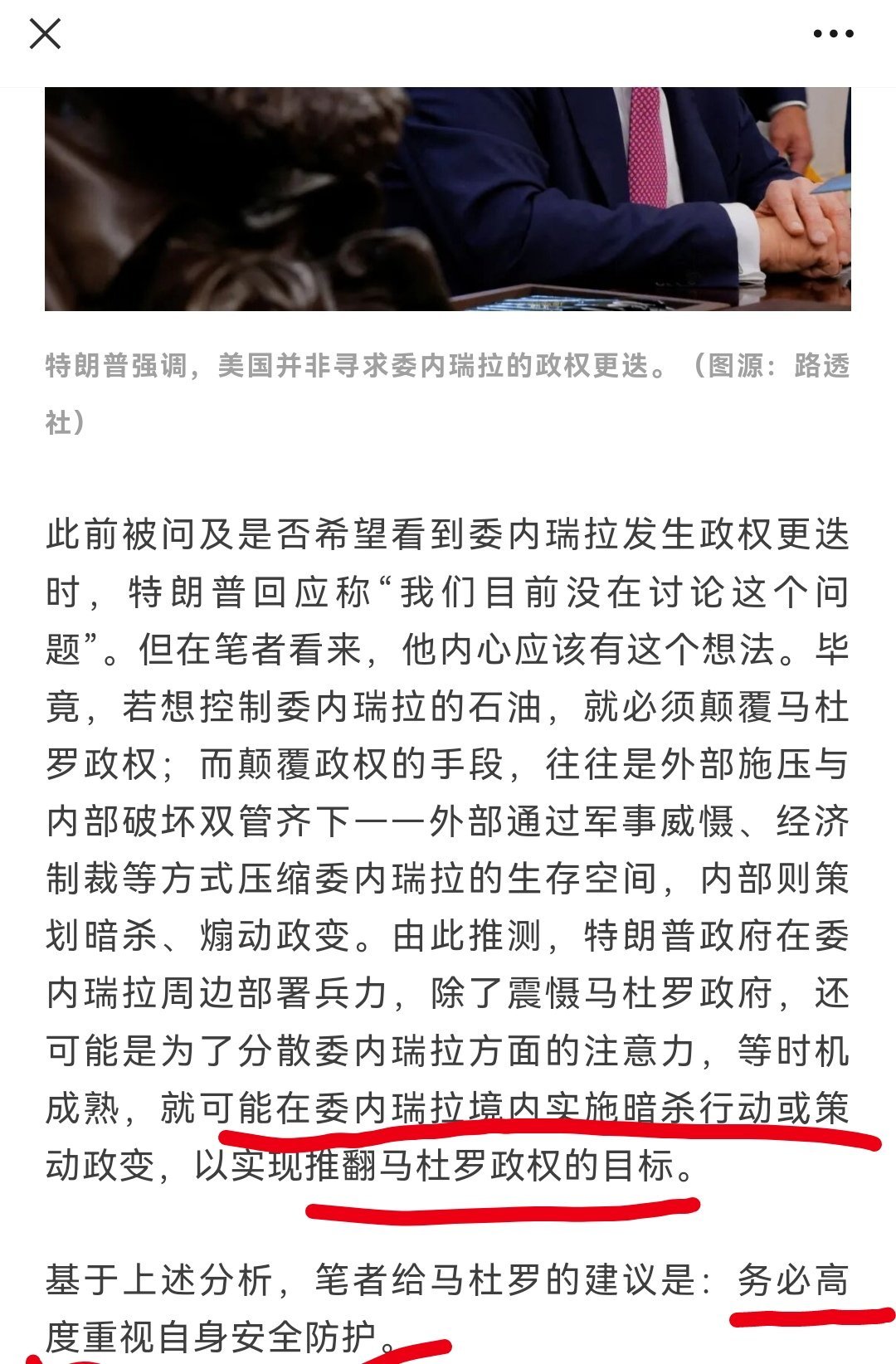 用户12xxx38 4 2026-01-04 09:59 美国的军事部署本来就是不足以支撑一场较长时期陆地作战,没有大量的陆军,所以只能是军事极限施压和外科手术式的军事行动。马杜罗政府根本没有安全忧患意识,在美军集结的时候就该把国家安全系统指挥中枢向内陆转移,并布置关键点的低成本单兵防空系统,成立秘密安保团队,布置替身,减少公开露面。结果啥都没做,所以这个结局就是必然。