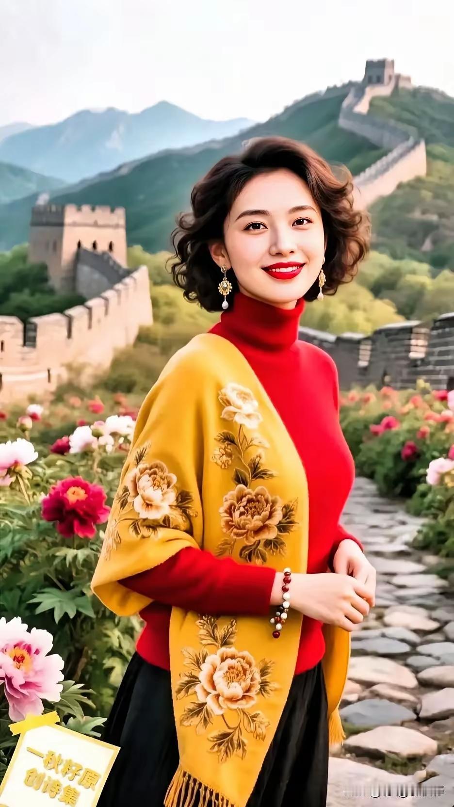 古典美人,湖畔花枝俏,红妆蓝衣映碧波。