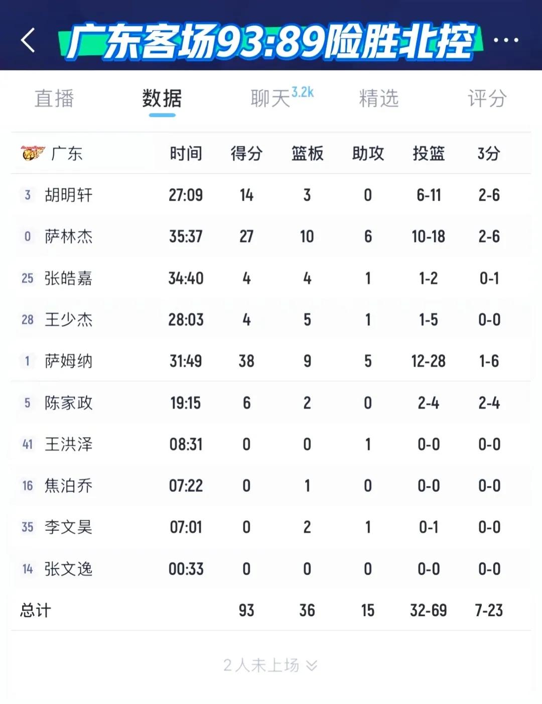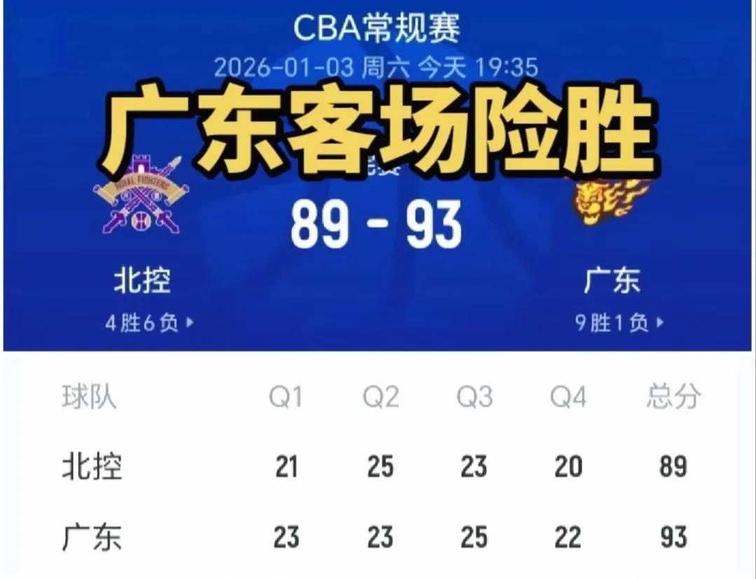 93-89,广东队客场艰难战胜北控,这场胜利可以说是来之不易,取胜之道有三点。 一,杜锋反制战术,临场水平还是高于张庆鹏一档的。 二,三军用命,球员们执行战术明确,个个从防守做起。 三,两外援真的大腿,硬解能力高水平。 最后领先十分,被追到只一分,说明比赛的激烈,球队缺少持球人的弊端,说明徐杰的重要性。 今年广东外援水平很强,等人员齐整,广东队将是夺冠大热门,唯一对手会是广厦。北京队其实不值一提,今晚他们又输广厦。