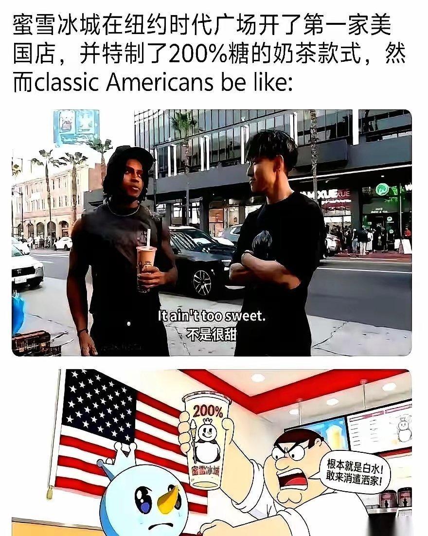 我跟你说个笑话,蜜雪冰城,那个把糖当水卖的雪王,居然在美国被人给上了一课。美国人