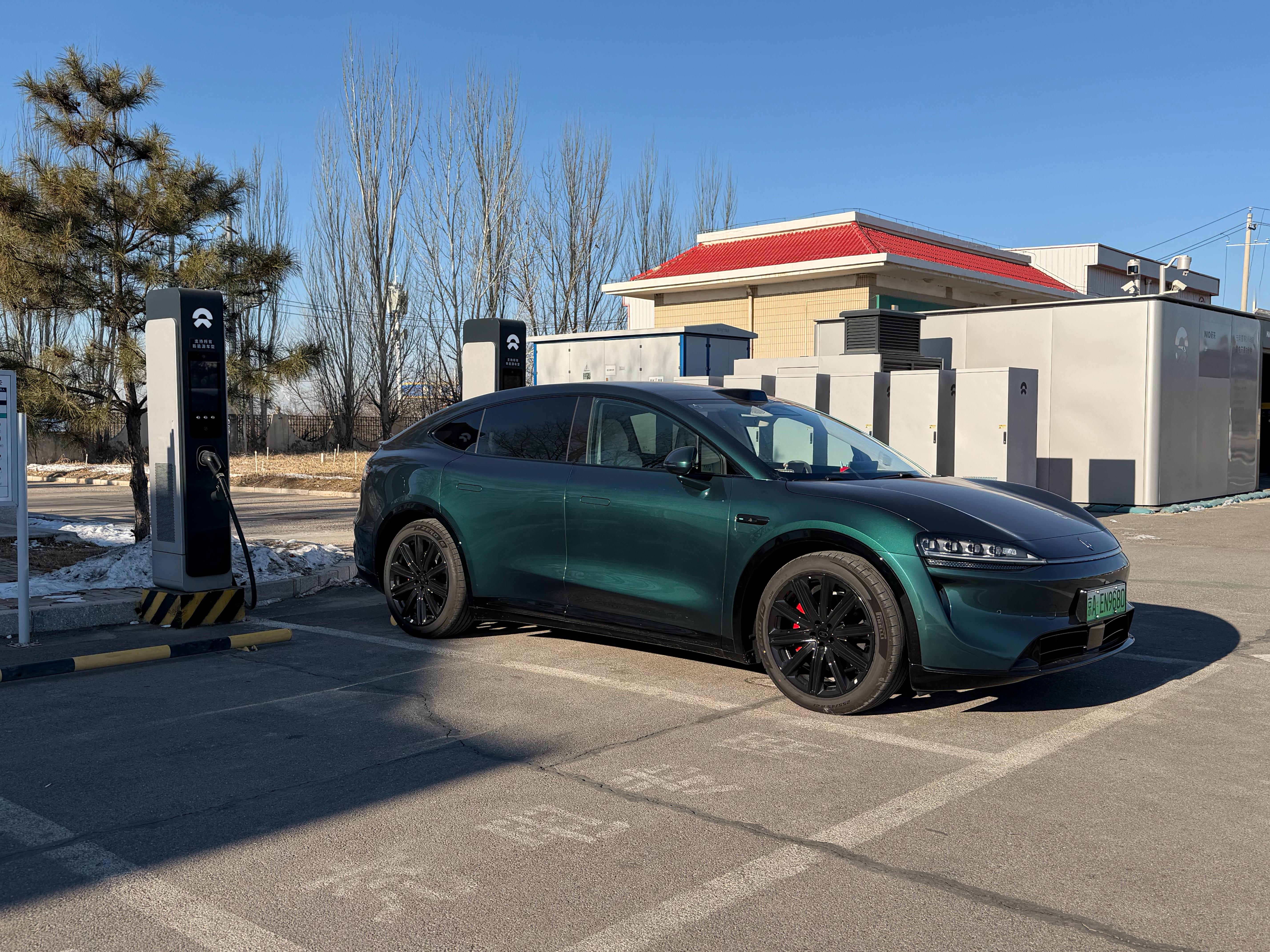 服务区在蔚来超快充给我的智界R7补个电买了杯热咖啡,继续行驶~张家口·张家口服