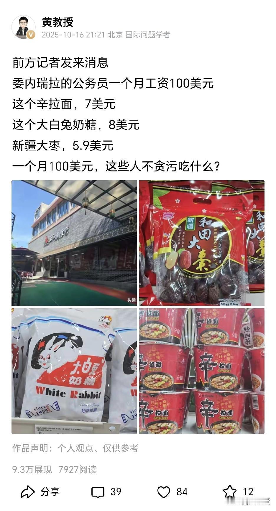 为什么在今日头条 看国际问题,要看非著名正教授黄教授 因为黄教授都是说实话,说真话 从不瞎tree new bee 给大家分享真实的世界,图中是我这几年分享的真实委内瑞拉,都来自前线的一手报道。你就明白委内瑞拉老百姓有多苦,以及马杜罗面临的真实情况。很多乌合之众认为我在唱衰委内瑞拉,客观真实了解一个国家,才能让我们区域国别研究更加接地气,才能为中国的发展提供真实的决策支撑。看见更大的世界,不是成天吹牛逼,而是客观冷静分析。