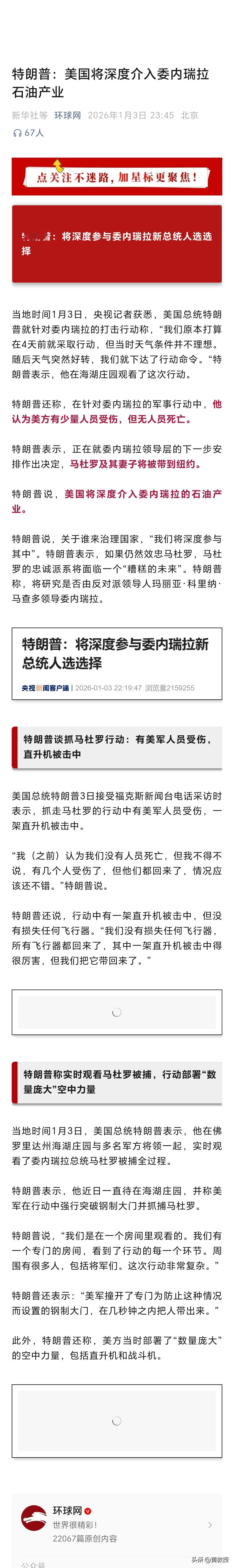 川普这货 还真是看上了委内瑞拉的石油 美国的这一次行动 绝对应该强烈谴责,严重践踏了国际法准则