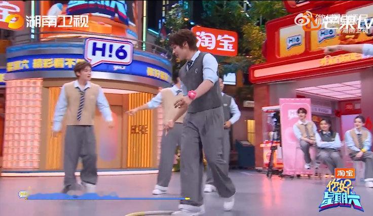 侯明昊剧宣绿茶人设屹立不倒你好星期六 抢瑜伽圈游戏里,侯明昊化身“隐藏款”卧底,“小绿茶”人设从《玉茗茶骨》带到现场,假装被推游戏崩了,还反咬张颜齐,这“茶”得超自然!侯明昊