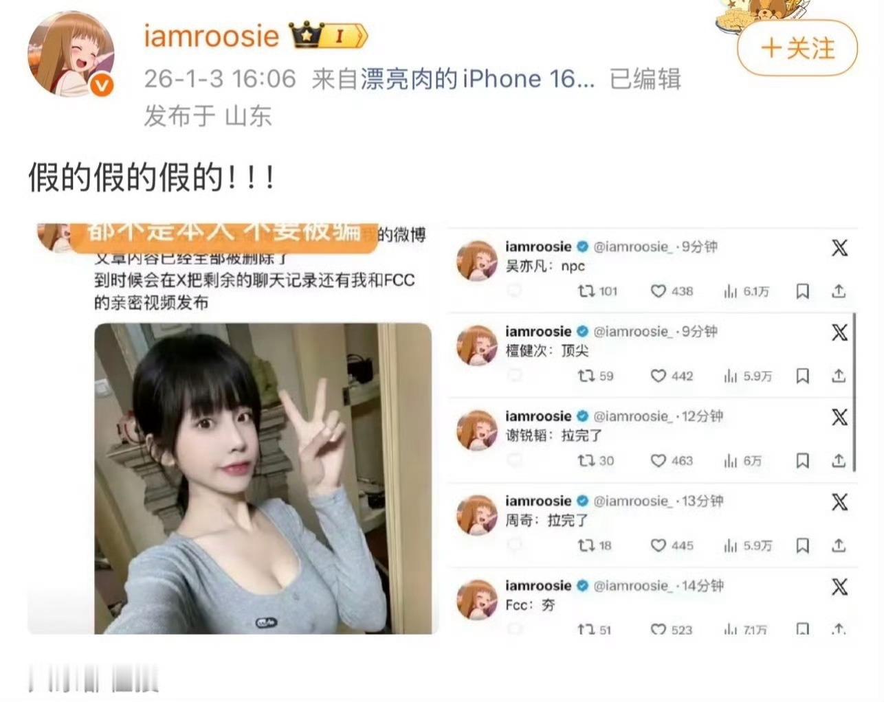 司晓迪打假排名司晓迪回应在外网排名明星“从夯到拉”iamroosie司晓迪回应在外网排名明星“从夯到拉”,表示那个账号是假的!