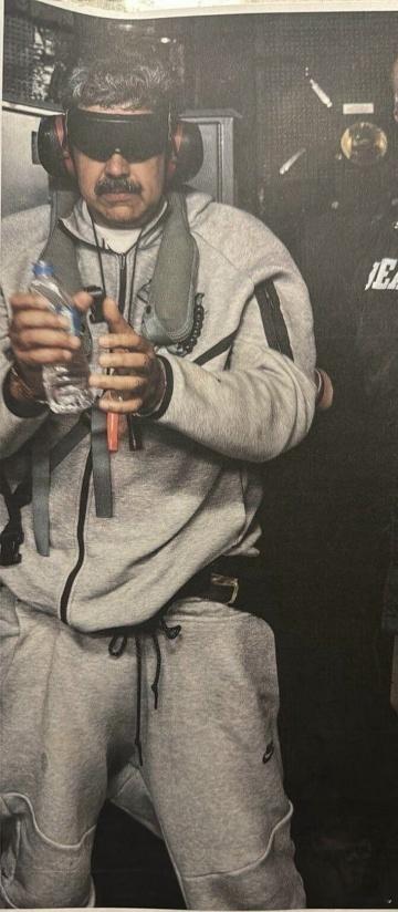 被美军劫持的委内瑞拉总统尼古拉斯·马杜罗在美国海军硫磺岛号(LHD-7)两栖攻击舰上的第一张照片。特朗普称已抓获委内瑞拉总统