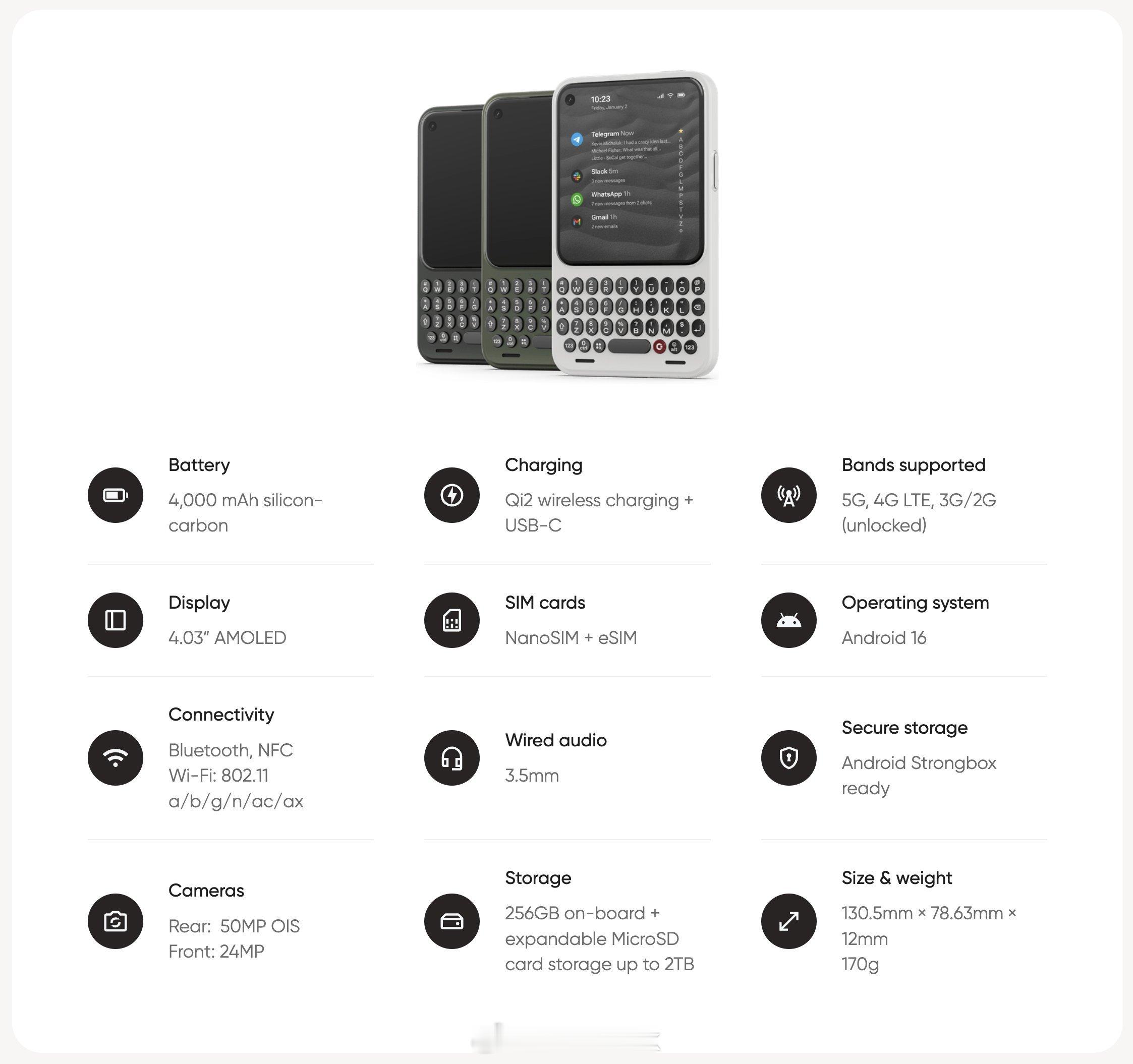 不愿透露处理器型号的冷门全键盘手机Clicks Communicator,查了下是MTK的5G 4nm Iot芯片,具体型号不详,仅售429