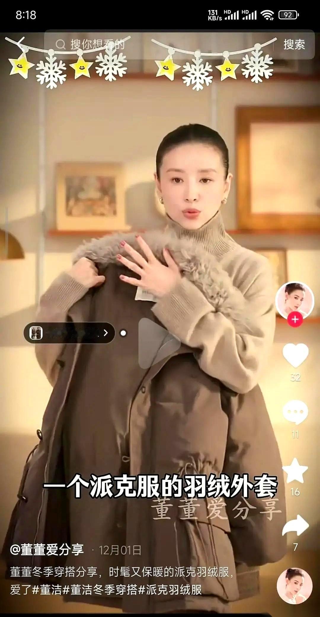 一杯水,哗一下,直接从头浇到身上。 镜头死死怼着,那羽绒服上的水珠,一颗颗滚下去,愣是一点没湿。 就这么着,三万件,一场直播抢光了。 我跟你说,董洁牛就牛在,她连美颜都不开。 抬起胳膊让你看腋下的走线,大大方方转个身,让你看腰身收得好不好。 没有声嘶力竭的“宝宝们”,没有虚头巴脑的“炸裂款”。 她就安安静静地,像个挑剔的买手,帮你把所有细节都摸了一遍。 这事儿看懂了吗? 时代真的变了。 现在品牌方都学精了,与其花大钱请明星P美图,不如直接上“酷刑”。 把衣服扔洗衣机里搅,穿着往风口上站,甚至挤一趟早高峰的地铁。 越狼狈,越真实,越卖得动。 说白了,我们早就被那些磨皮过度的“完美”给喂撑了。 你心里跟明镜儿似的,那些漂亮话术,哪个是真哪个是假? 所以,当你看到一个人,敢把一杯水泼在自己身上来证明一件衣服的时候,你买的,早就不是那件衣服了。 你买的是一句实话。 是在用自己的钱包,给这个浮夸的世界,投一张清醒的反对票。