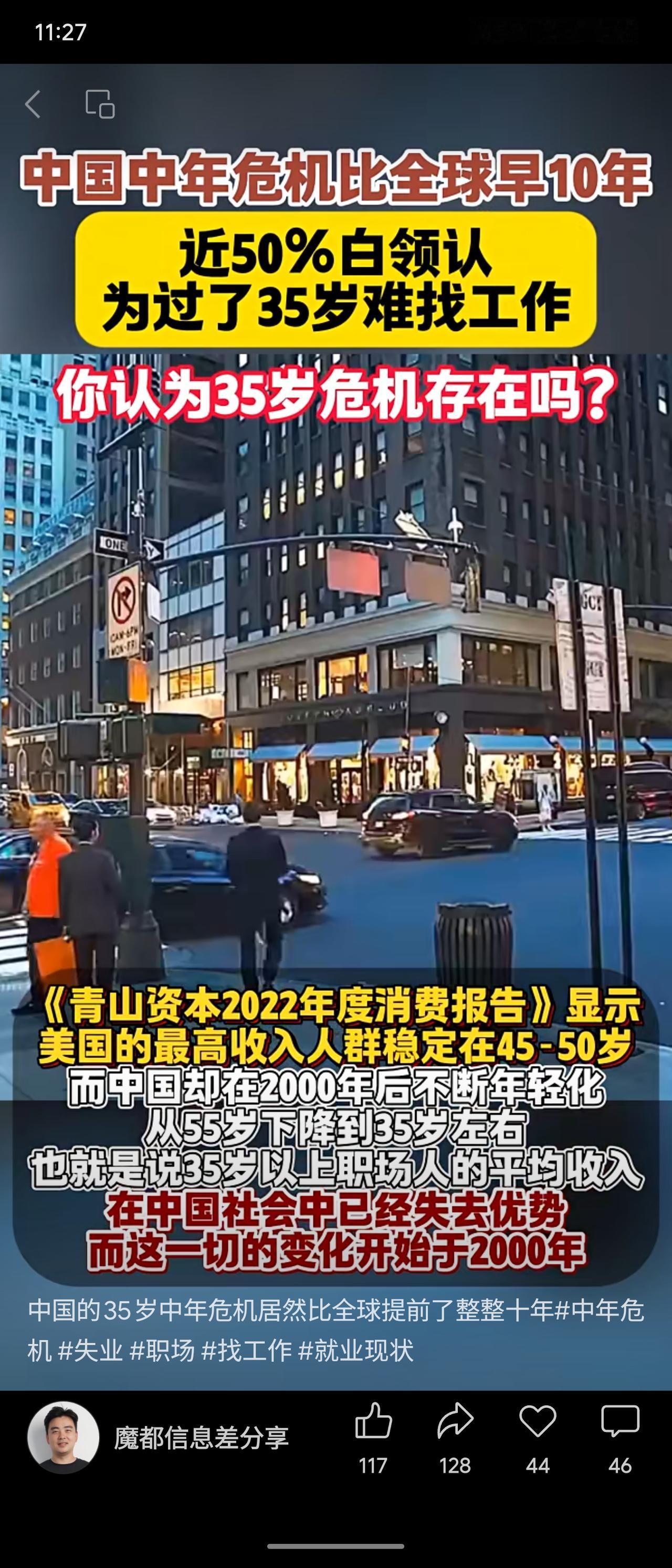 多项报告指出,中国职场存在显著的“35岁危机”:近50%白领认为35岁后难找工作,85%认同存在该年龄门槛。数据显示,全球中年幸福低谷在47-48岁,而中国的相关焦虑和职业优势拐点提前约十年,出现在35岁。分析表明,自2000年后,国内高收入群体年龄层下降,35岁后薪酬增长乏力甚至可能被年轻人反超,折射出职场年龄压力前置的现状。