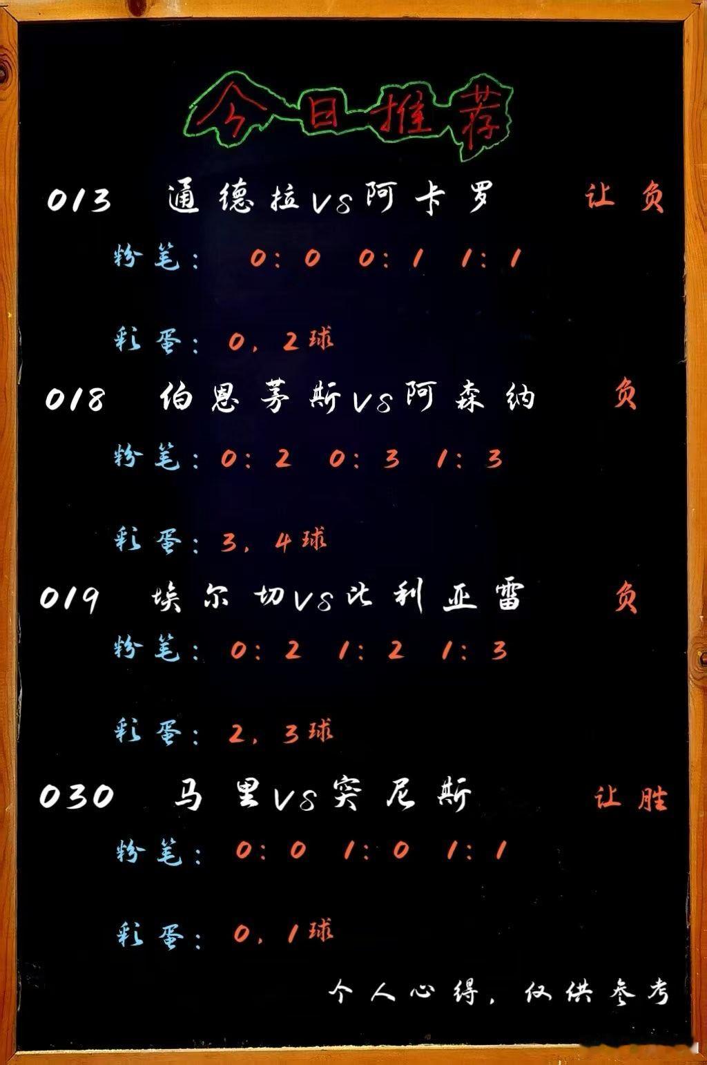 1月3日005 维戈塞尔塔VS 巴伦西亚 006 特鲁瓦 VS 圣旺红星007 哈萨征服 VS 利雅得青年008 热那亚 VS 比萨009 萨乘洛 VS 帕尔马010 费哈 VS 拉斯永恒011 狼队 VS 西汉姆联012 奥萨苏纳 VS 毕尔巴鄂竞技013 通德拉 VS 阿鲁卡014 摩纳哥 VS 里昂015 塞内加尔 VS 苏丹016 尤文 VS 莱切017 青达联合 VS 布赖代合作018 伯恩茅斯 vs 阿森纳019 埃尔切 VS 比利亚雷亚尔