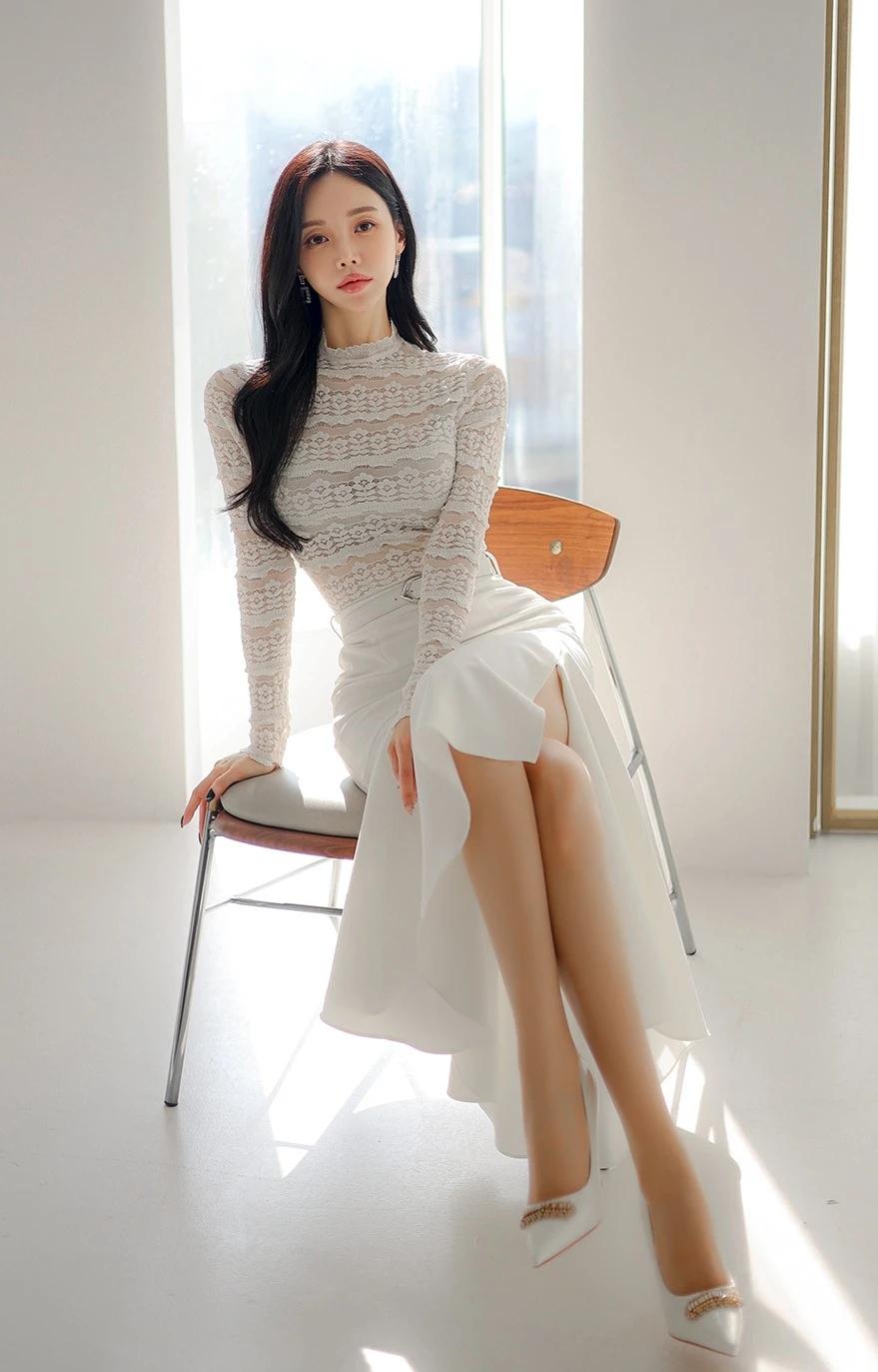 孙允珠-优雅白裙,梦幻蕾丝,温柔侧颜,静谧时光。ins韩搭日常照 分享每日的感悟 女孩子怎么穿搭既时尚又好看?