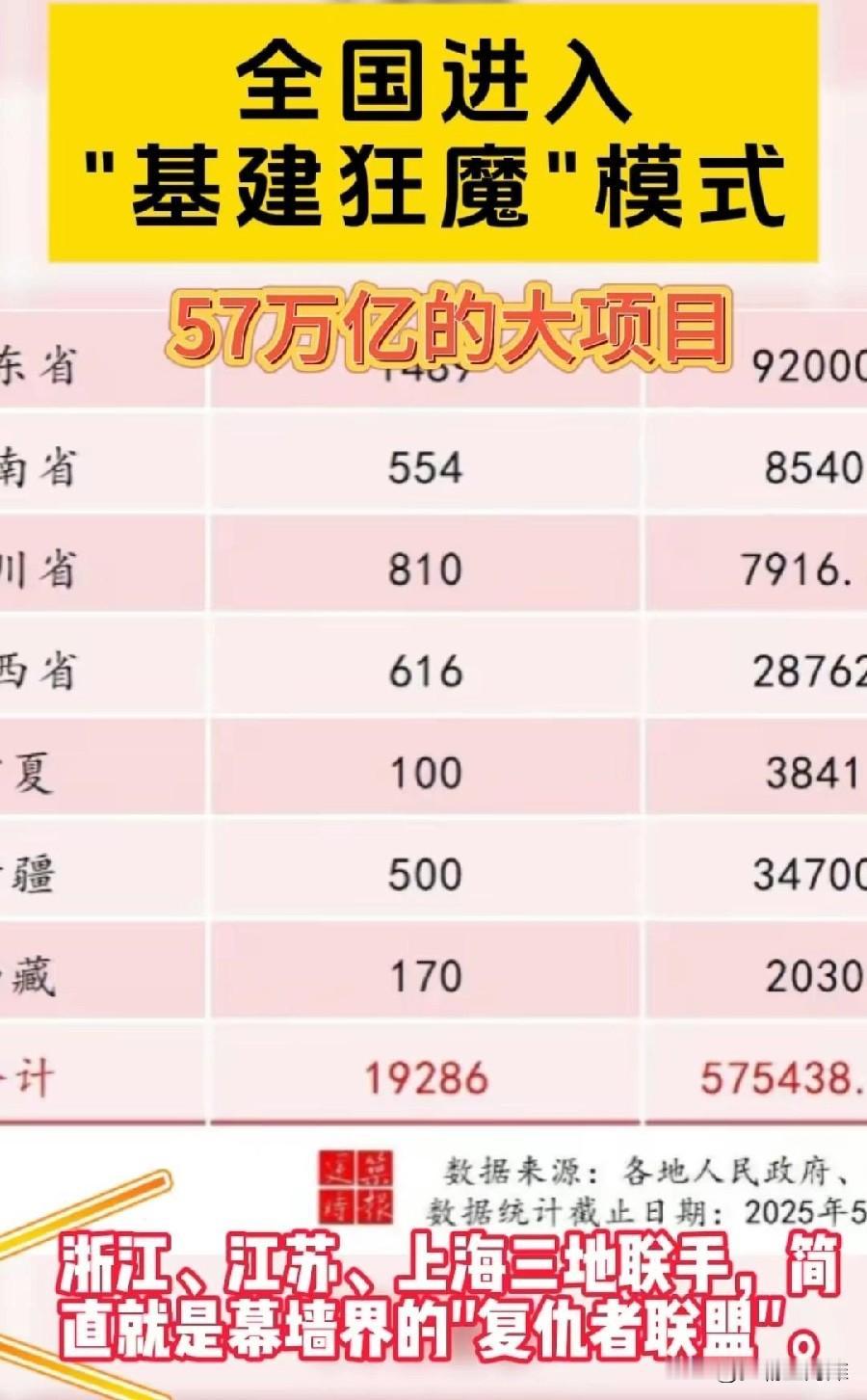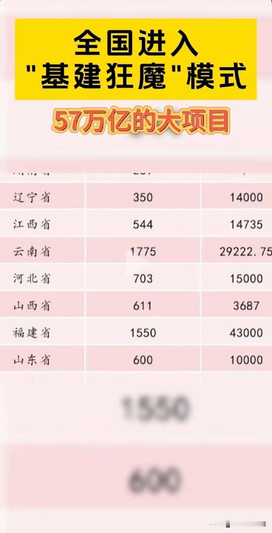 大基建时代又将到来!高达57万亿。看看各省的补贴,没想到补贴最高的居然是山东省! 农民工兄弟们的福利来了,最起码十年内不用担心没有活可以干了!