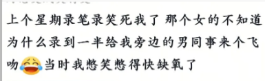 上个星期录笔录笑死我了,那个女的不知道为什么录到一半给我旁边的男同事来个飞吻,当时我憋笑憋得快缺氧了