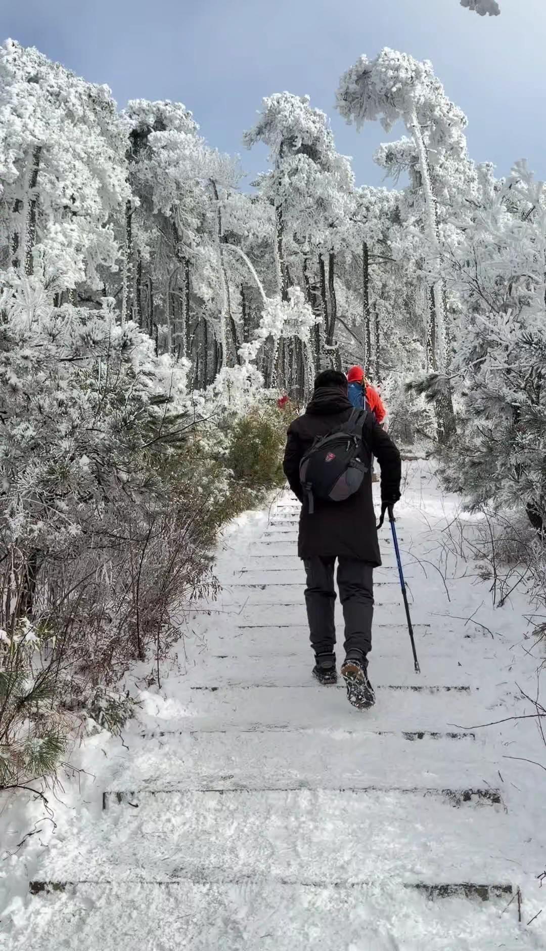 南方也可以听脚踩在雪地上嘎吱嘎吱的声音,一起来爬山涉雪吧!徒步登山